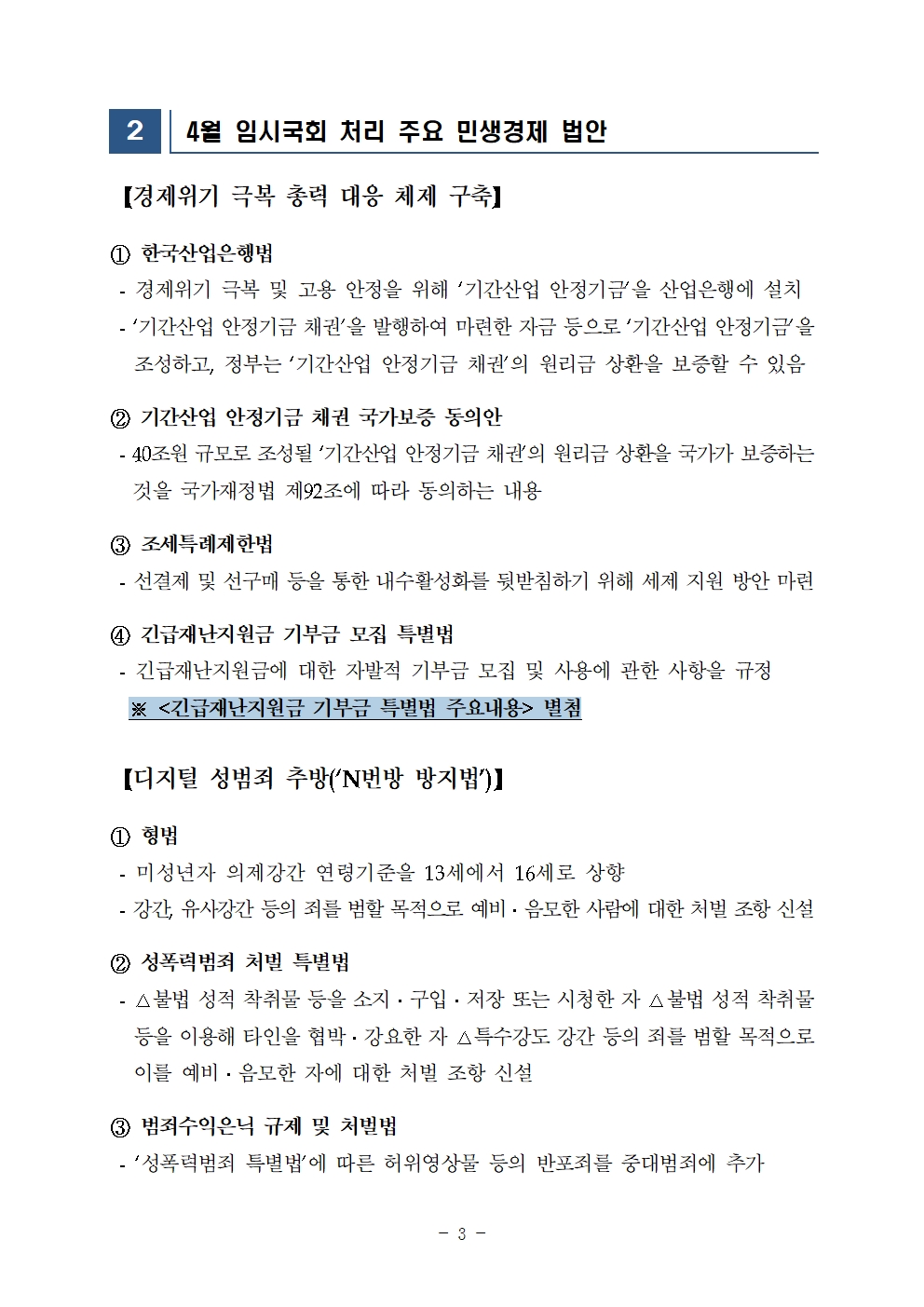 4월 임시국회 추경예산 및 주요법안 처리 성과