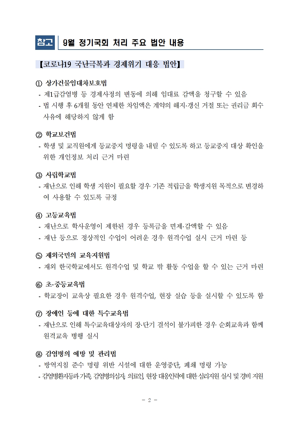 9월 정기국회 입법성과 보도자료