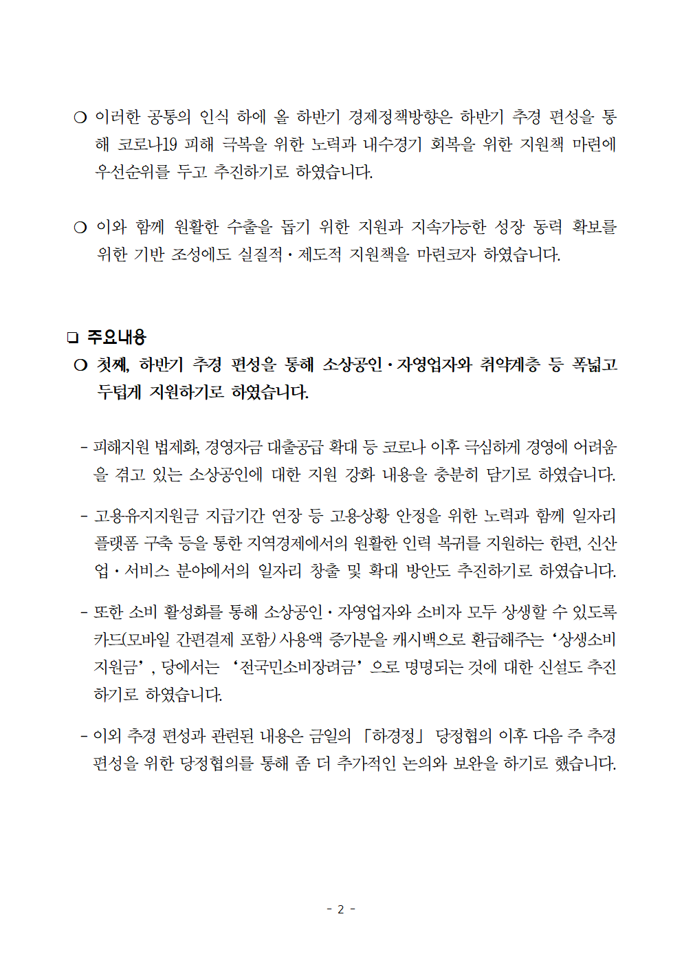 2021년도 제2차 추가경정예산안 당정협의 결과