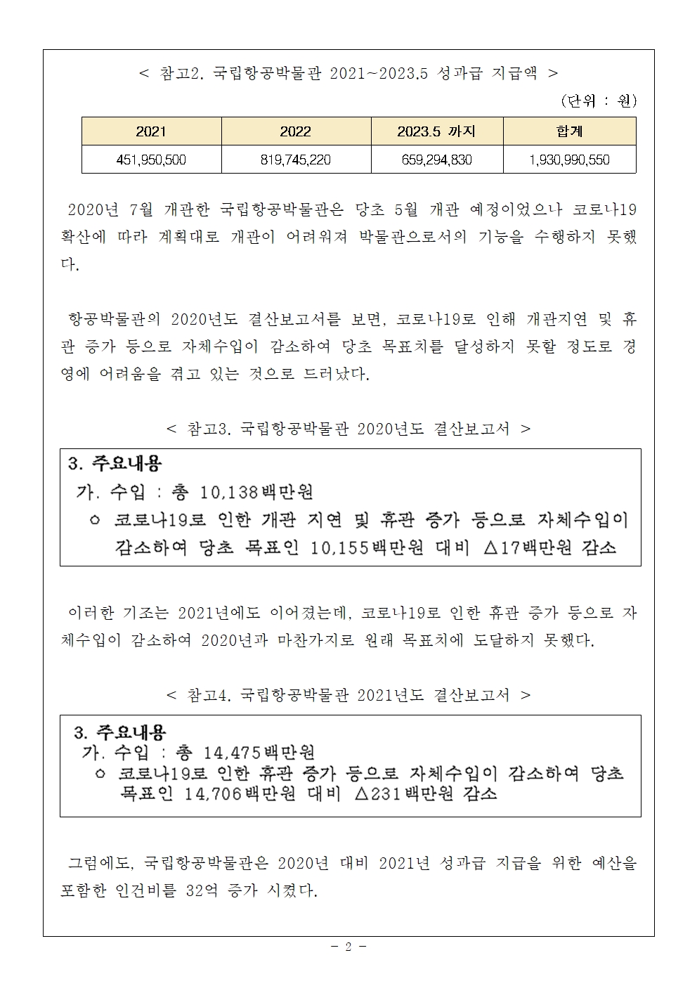 [국회의원 김병기 보도자료] 국립항공박물관, 어려운 여건에서도 꾸준히 성과급 돈잔치