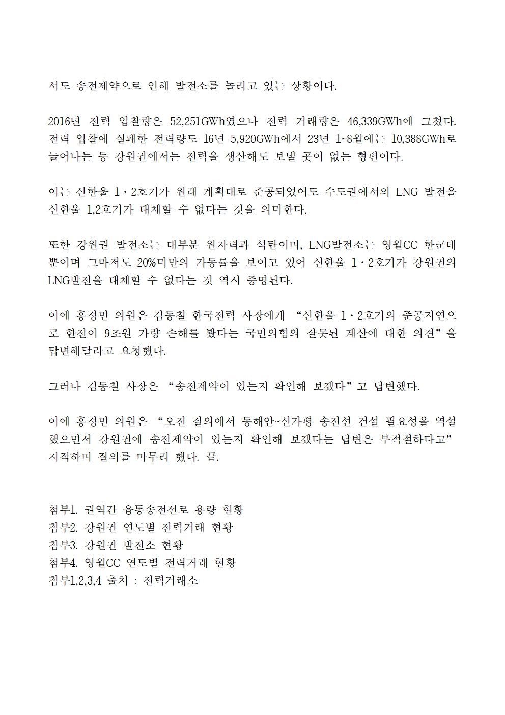 [홍정민 의원 보도자료] 신한울1·2호기 완공지연에 따른 한전 9조원 손해 주장 팩트체크