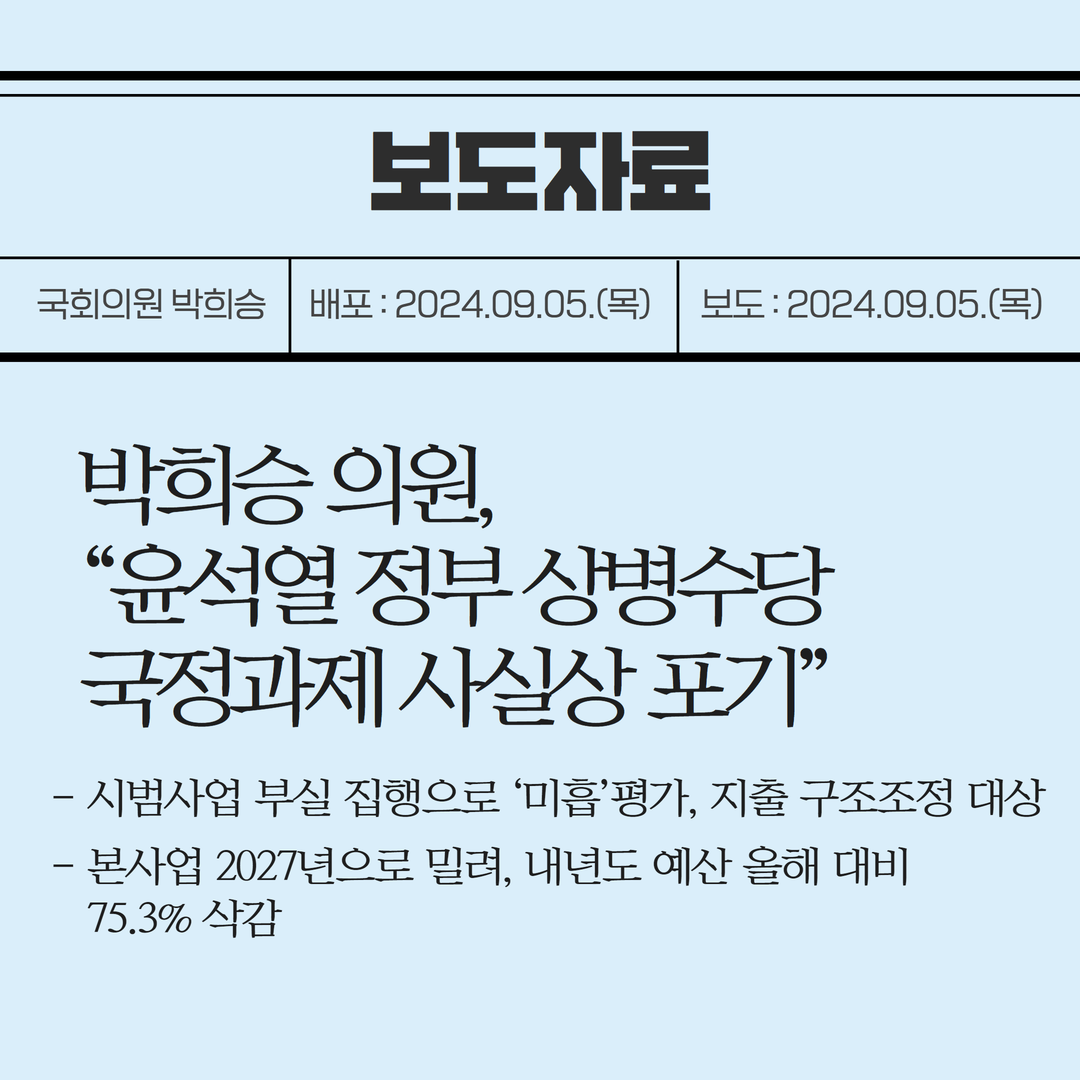 [국회의원 박희승 보도자료] 박희승 의원, “윤석열 정부 상병수당 국정과제 사실상 포기”