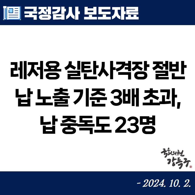 [국회의원 강득구] 레저용 실탄사격장 절반 납 노출 기준 3배 초과, 납 중독도 23명