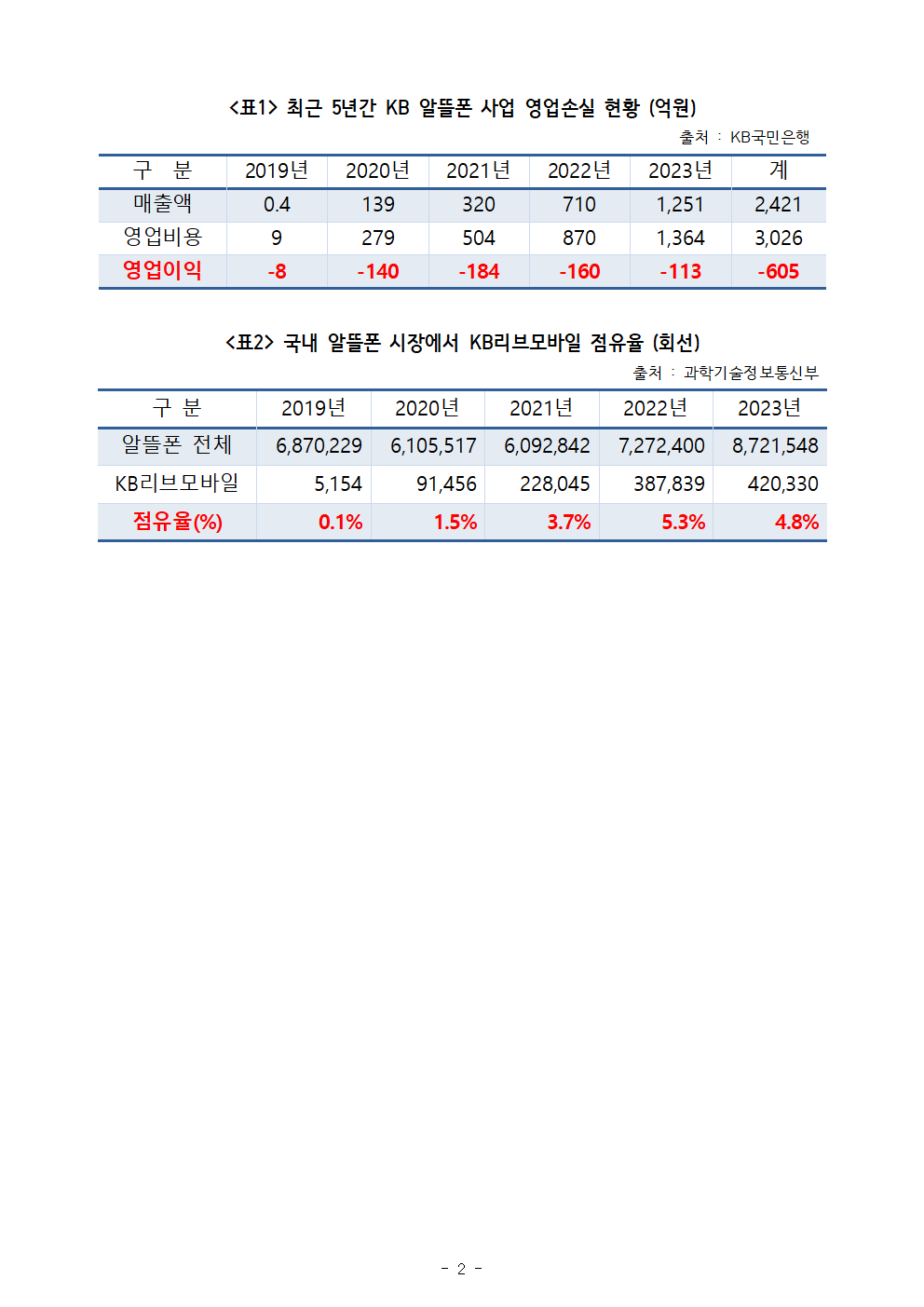 2024국감_한민수_KB_알뜰폰_5년간_600억원_적자_출혈_경쟁에도_시장_점유율_오히려_감소.hwp