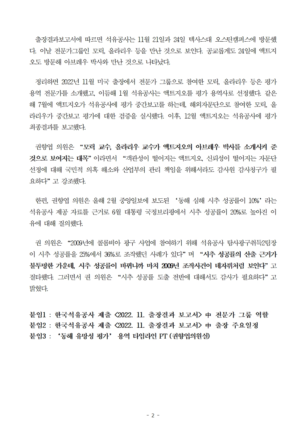 [국회의원 권향엽] 석유公, 올 3월 대왕고래 '세부 시추계획' 이미 수립. 산업부, 허위 보도자료 배포