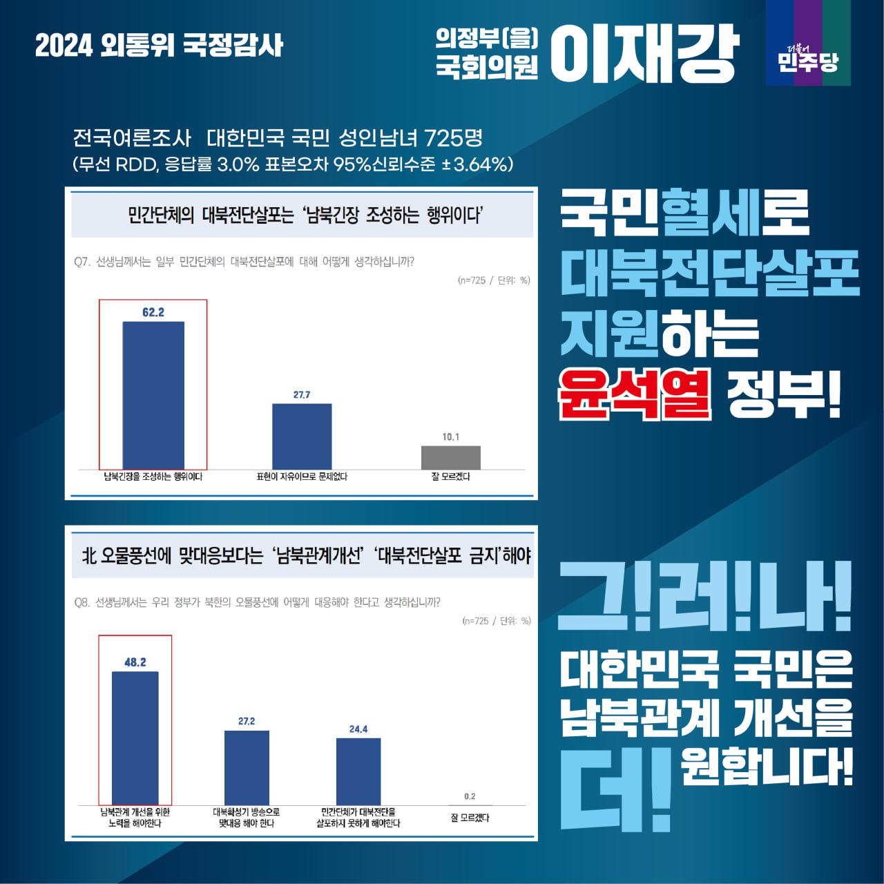 [국회의원 이재강 국정감사 카드뉴스] 국민혈세로 대북전단살포 지원하는 윤석열 정부! 전국여론조사