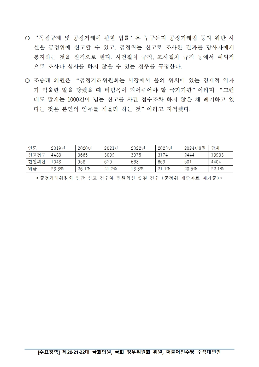 [국회의원 조승래] 공정위 신고 5건 중 1건은 사건 접수도 않은 채 폐기