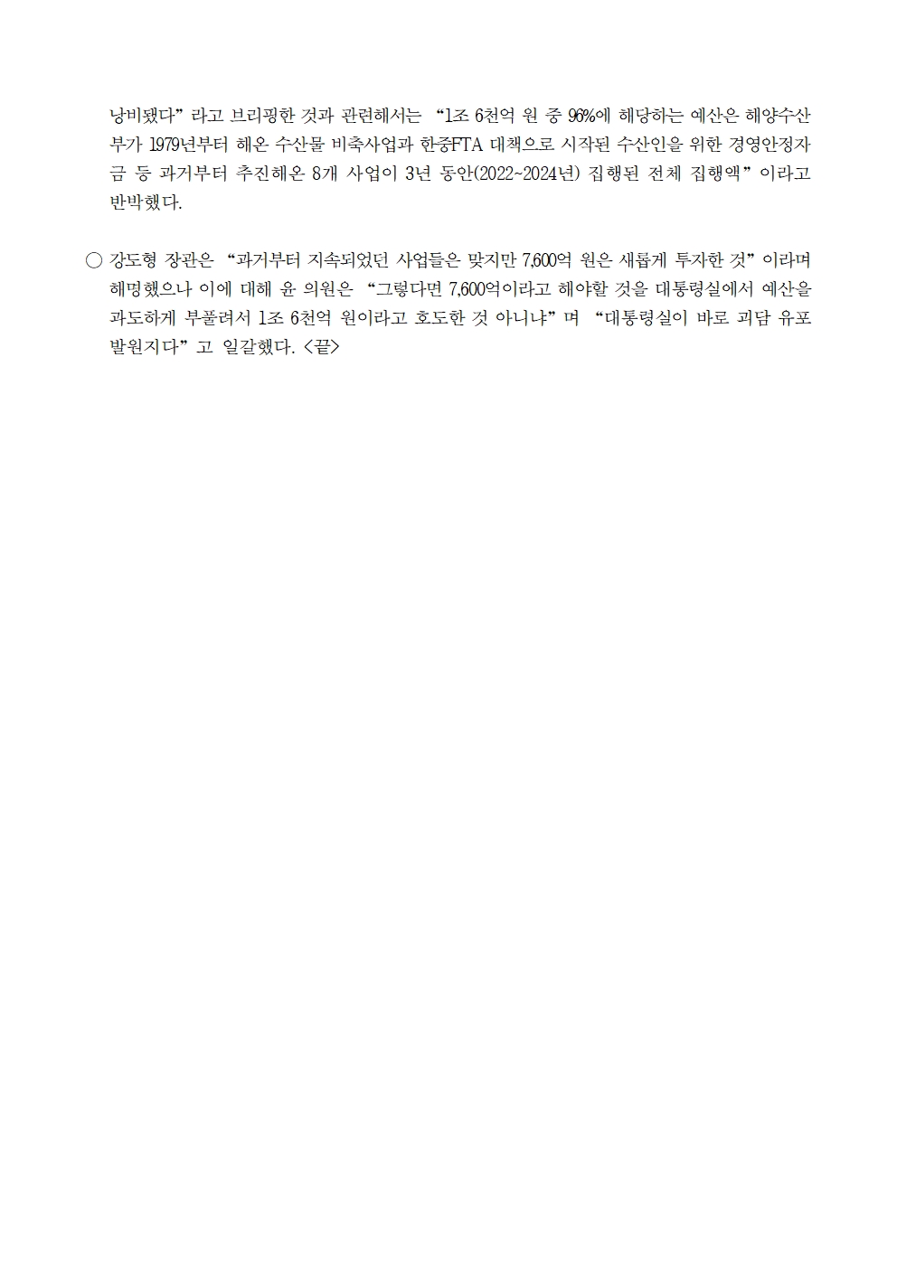 [윤준병 의원 국정감사 보도자료] 오염수 투기 고작 1년 지났는데 해수부 장관 업무보고에 대책 관련 내용 쏙 빠져
