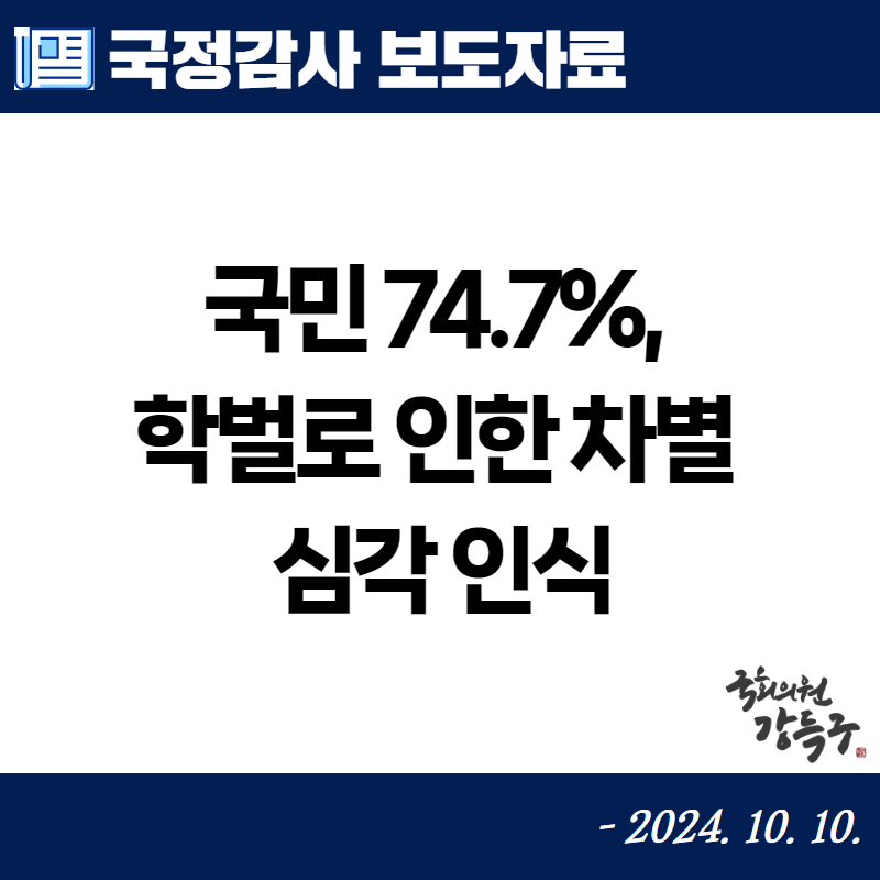 강득구 의원 , “ 국민 74.7%, ‘ 학벌로 인한 차별 심각 ’ 인식 ”