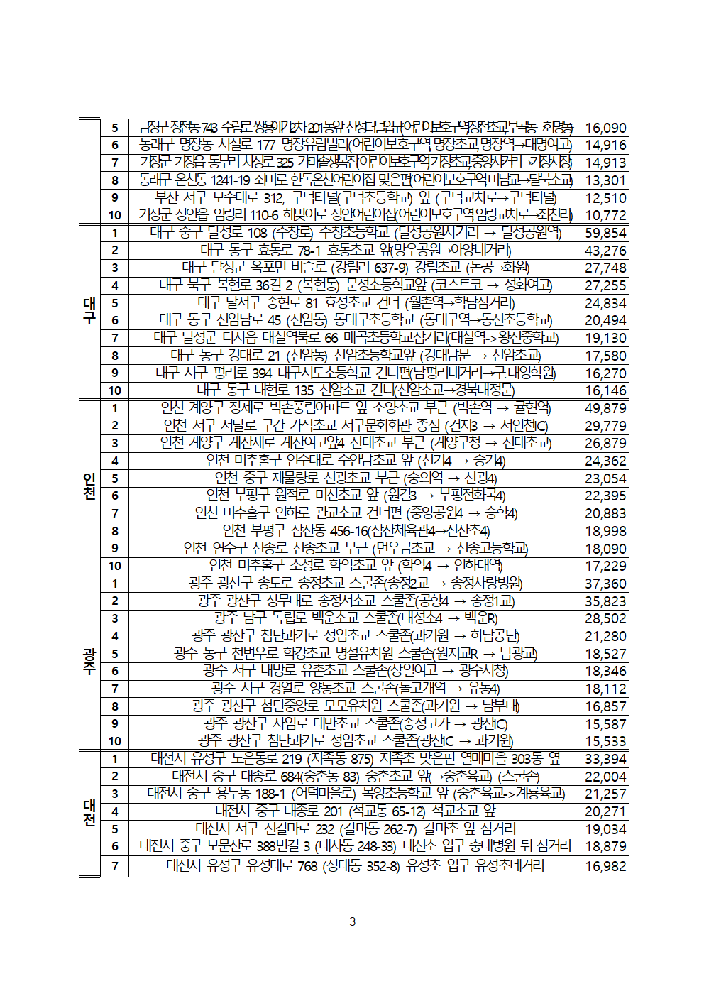 [한병도의원]2024행안위국정감사보도자료(4)_전국 스쿨존 무인단속 최다 단속 지점은 ‘서울 동대문구 배봉초 앞’.hwp