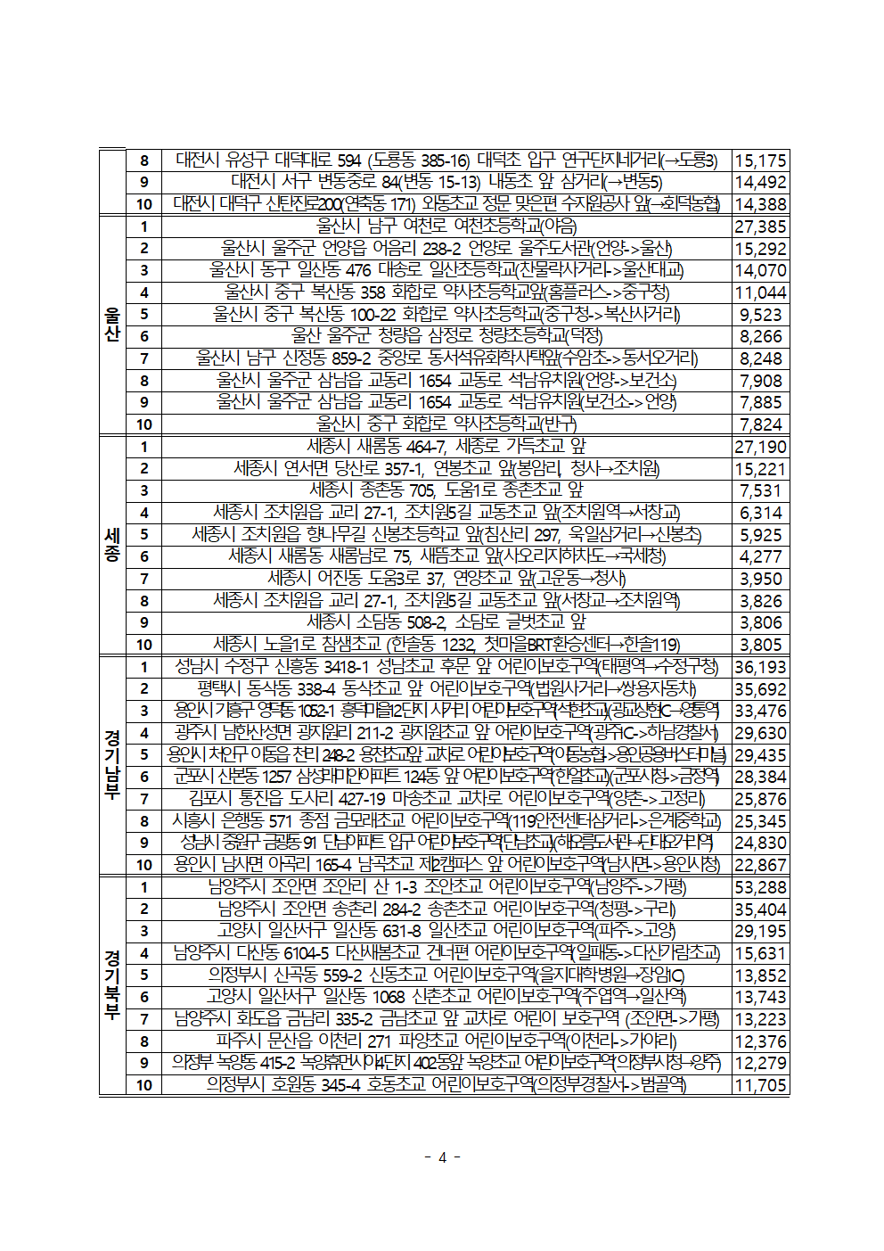 [국회의원 한병도 국정감사] 전국 스쿨존 무인단속 최다 단속 지점은 ‘서울 동대문구 배봉초 앞’
