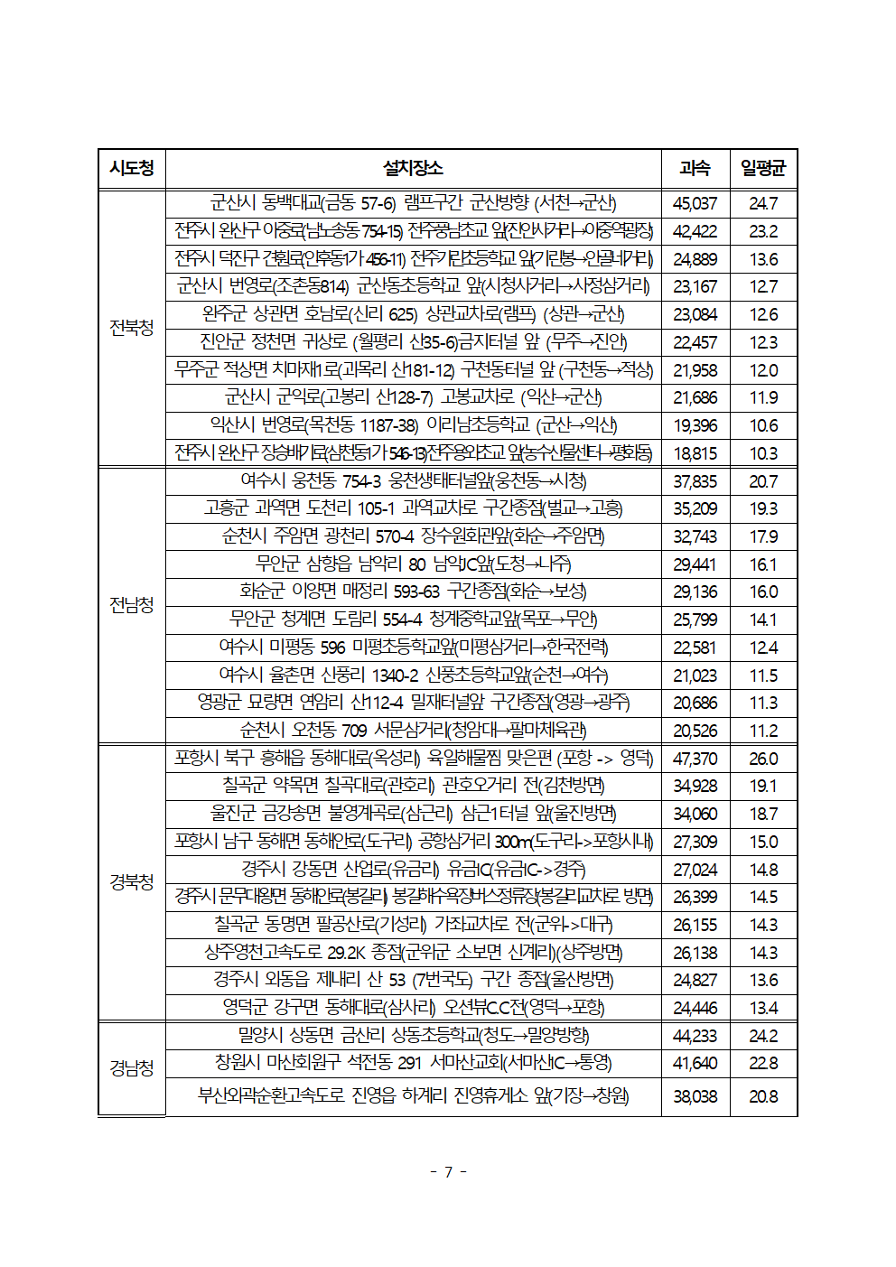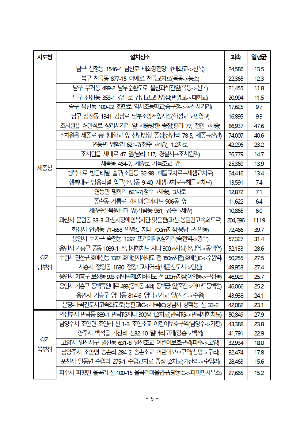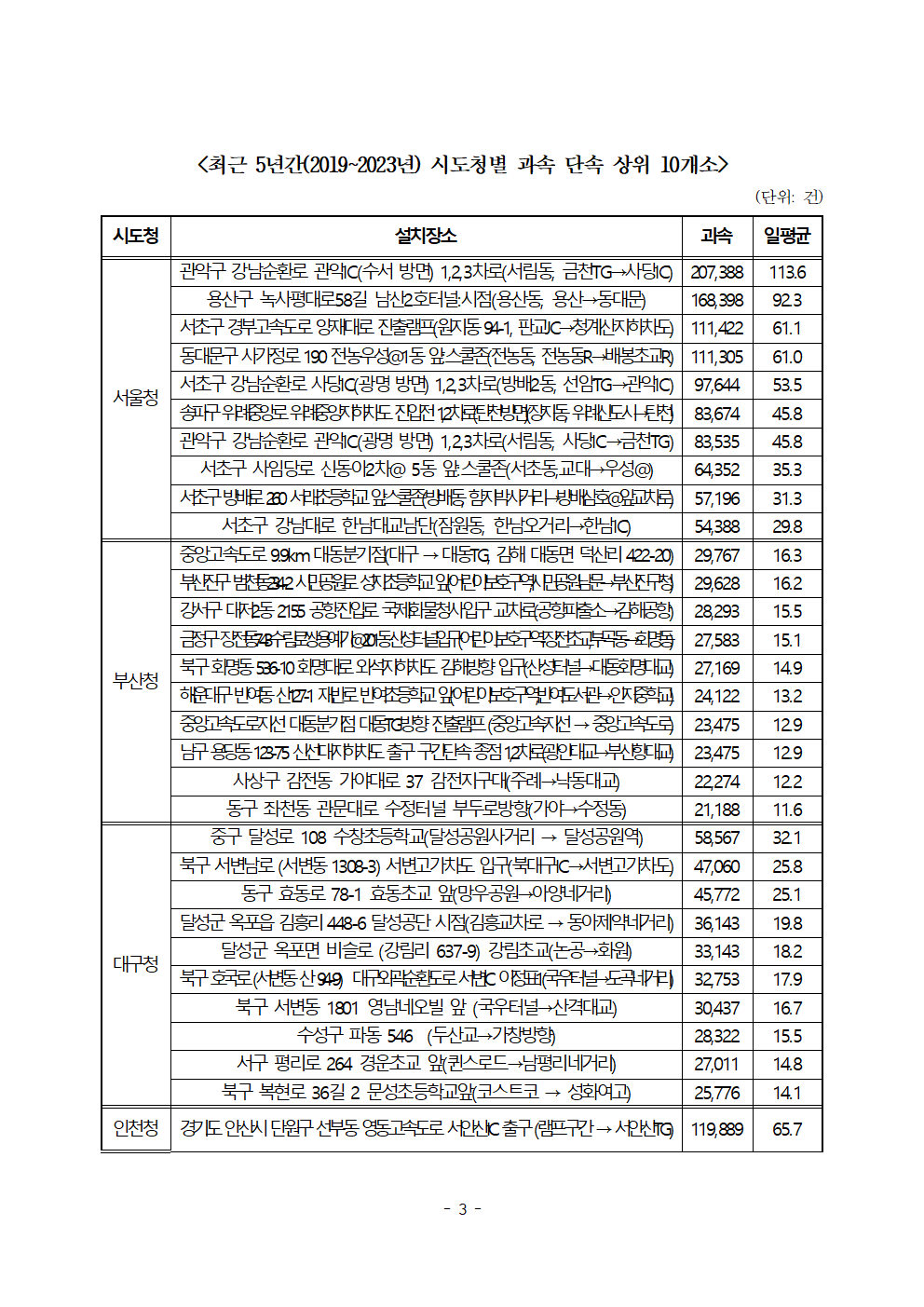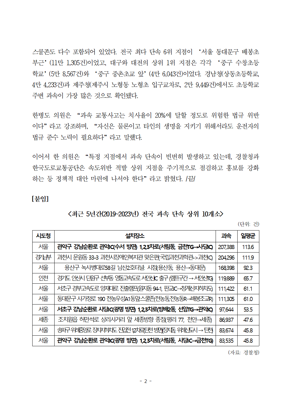 [한병도의원]2024행안위국정감사보도자료(12)전국에서 속도위반 가장 많은 곳은 ‘강남순환로 관악IC’... 5년간 20만 7천건 단속.hwp