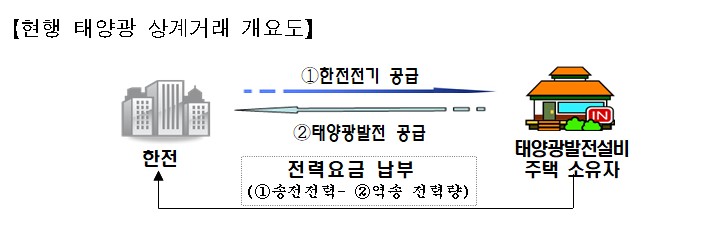 현재 전기요금은 한전이 공급한 전력량(수전전력량)과 신재생에너지 발전설비 설치자가 한전에 역송하는 잉여전력량(이하 잉여전력량)을 별도로 계량하여 상계처리(수전전력량 – 잉여전력량)후 요금을 청구하고, 부가세는 상계처리이전의 수전전력량 기준으로 부과하고 있다.