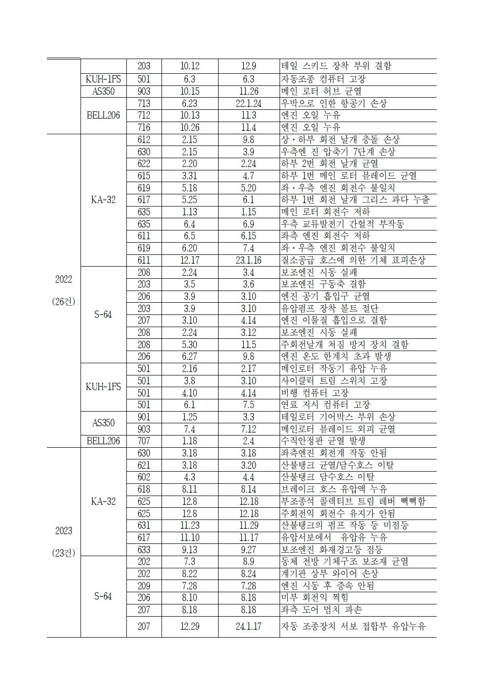[윤준병 의원 국정감사 보도자료] 헬기 부품수급 부족·결함 발생·노후화 등 산림청 헬기 관리 총체적 부실