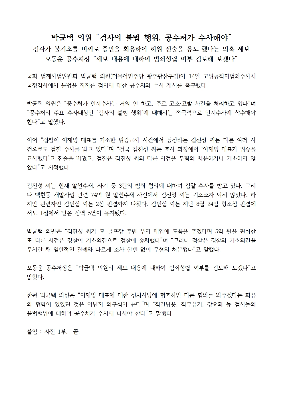 241014_국정감사 보도자료_박균택 의원 “검사의 불법 행위 제보 공수처가 수사해야”_f.hwp