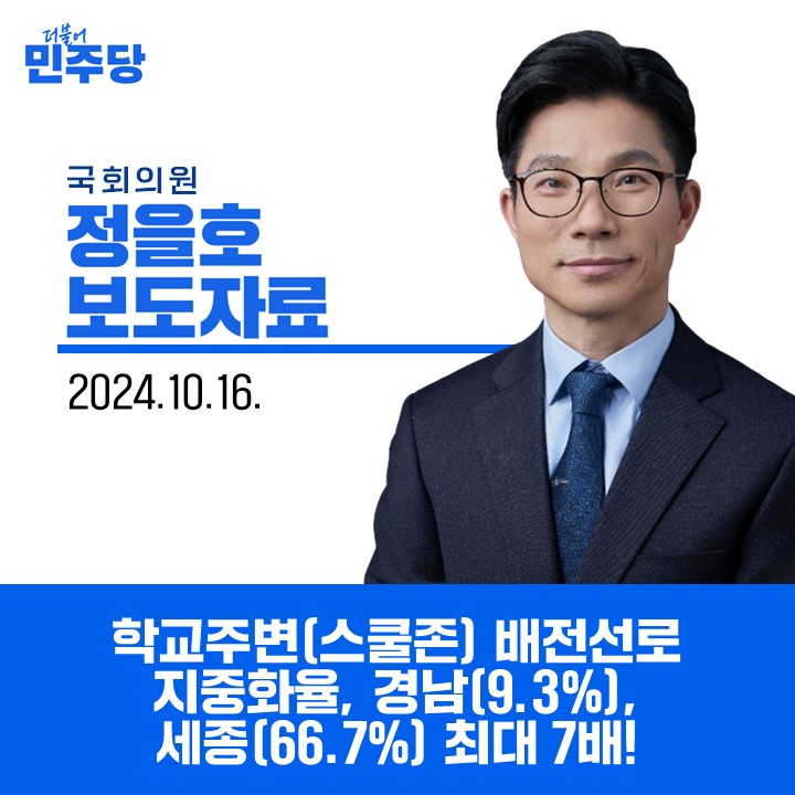 [국회의원 정을호 국감보도] 학교주변(스쿨존) 배전선로 지중화율, 경남(9.3%), 세종(66.7%) 최대 7배!_241016