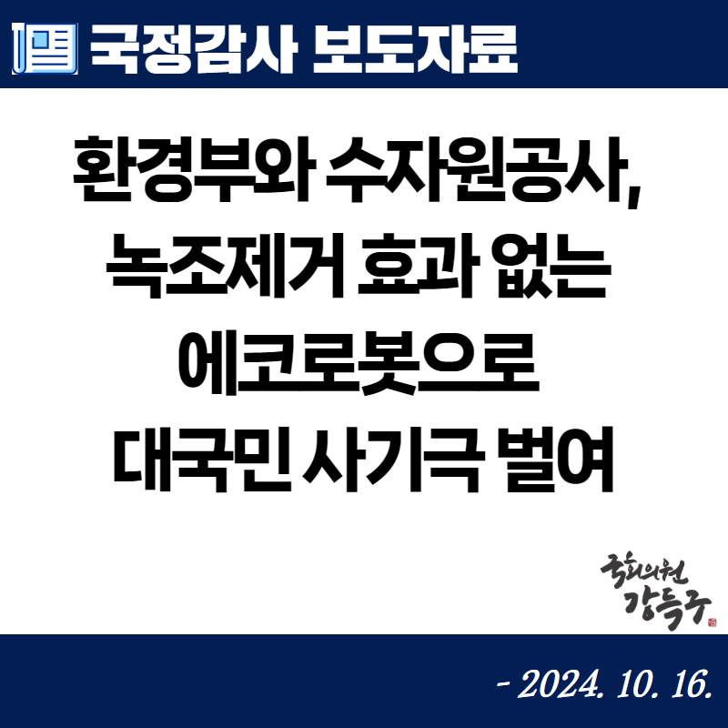 [국회의원 강득구] 환경부와 수자원공사, 녹조제거 효과 없는 에코로봇으로 대국민 사기극 벌여