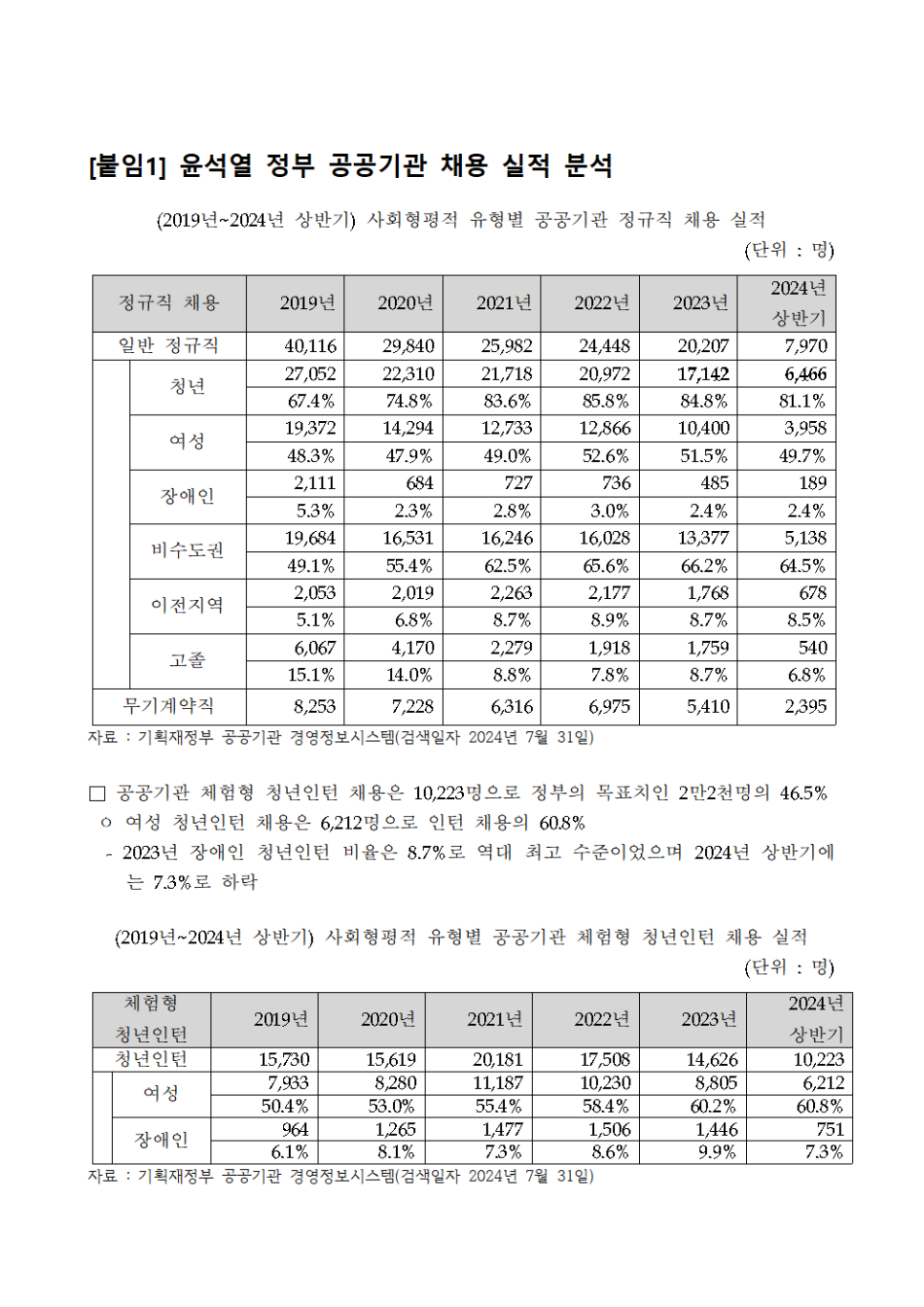 한편, 윤석열 정부 들어 공공기관 청년 고용 규모도 줄어든 것으로 확인됐다.