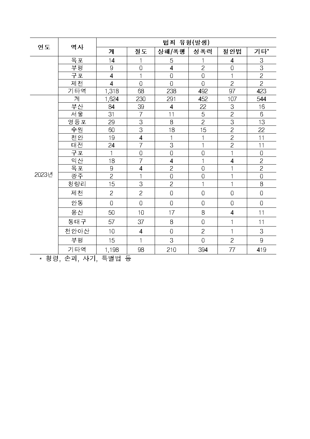 [국정감사 보도자료] 240922_이춘석 의원_ 철도시설 및 열차 내 범죄 매년 평균 2_500여 건 발생_ 성폭력이 최다.hwp