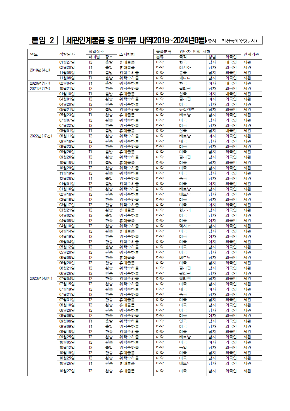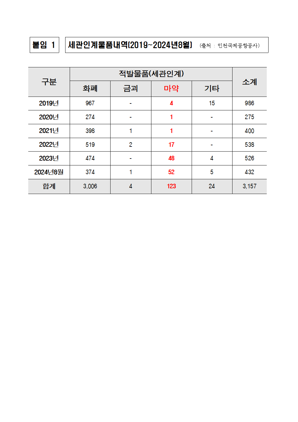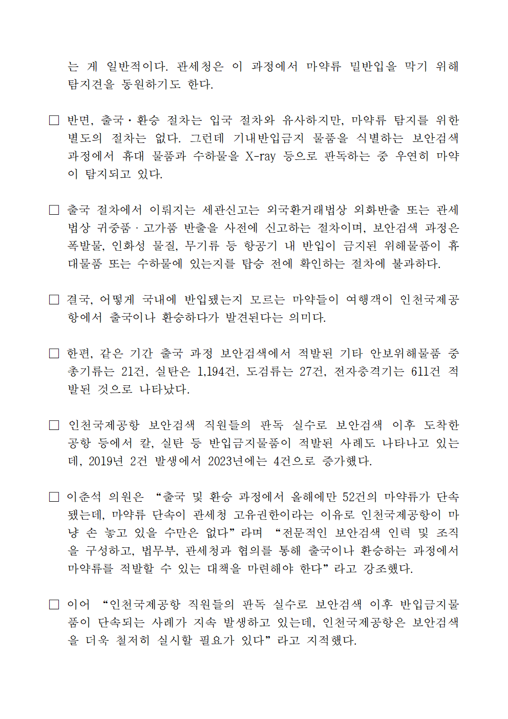 [국정감사_보도자료]_240915_이춘석_의원__인천공항_출국·환승_과정에서_마약류_적발_증가세.hwp