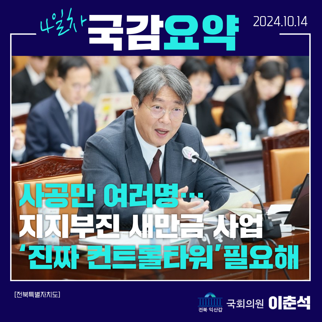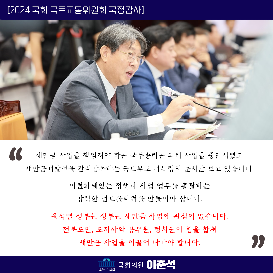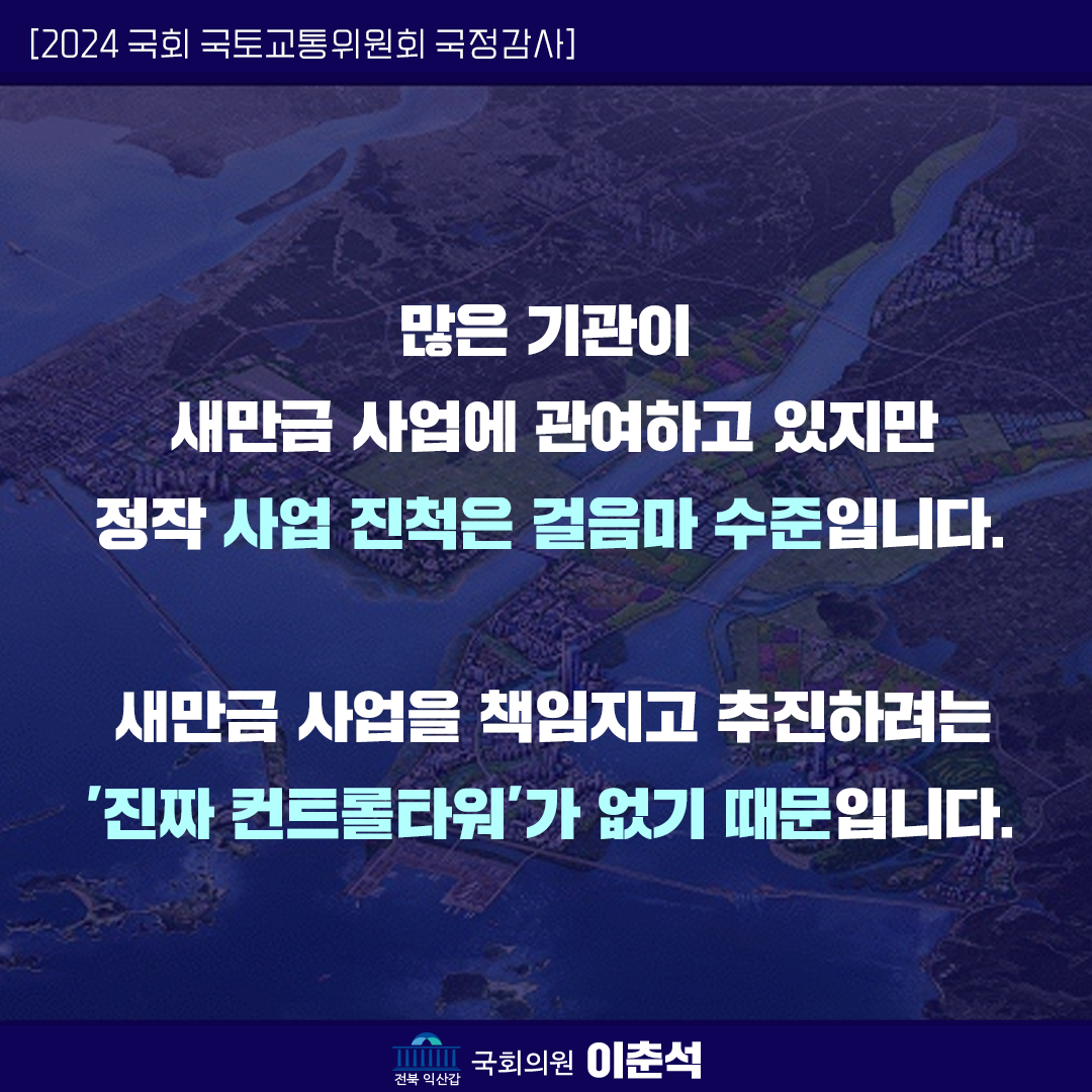 [이춘석 의원 국정감사 보도자료] 이춘석 의원, 새만금 사업의 ‘진짜 컨트롤 타워’가 필요하다