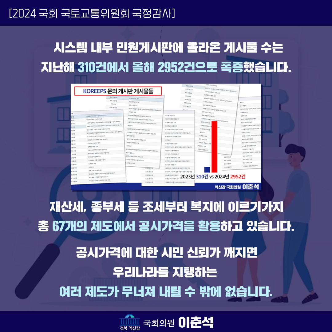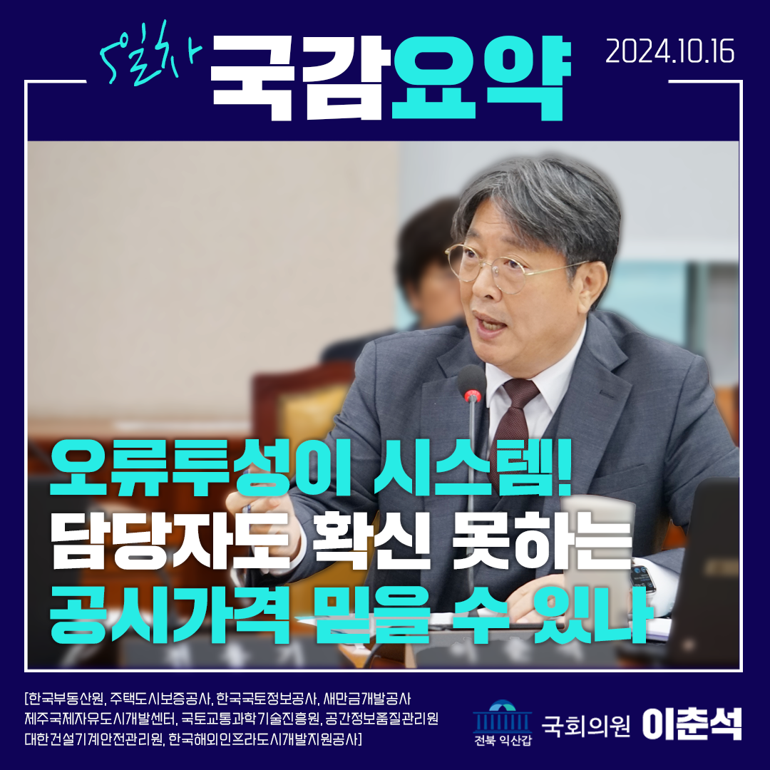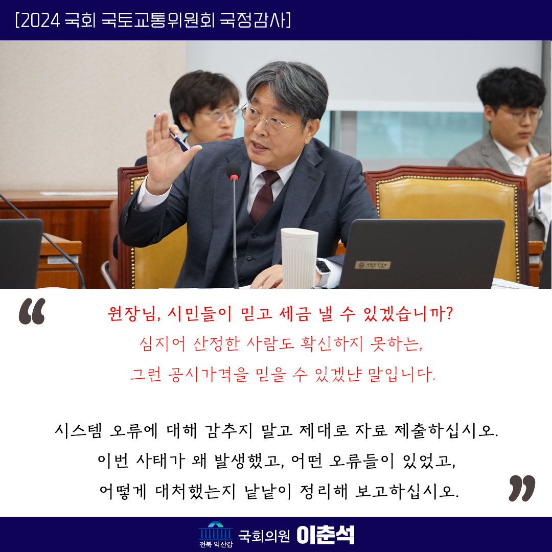 [이춘석 의원 국정감사 카드뉴스] 오류투성이 시스템! 담당자도 확신 못하는 공시가격 믿을 수 있나