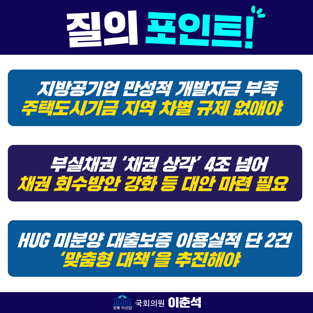 [이춘석 의원 국정감사 보도자료] 이춘석 의원, HUG가 부채에서 지운 부실채권 ‘채권 상각’ 4조 원 넘어