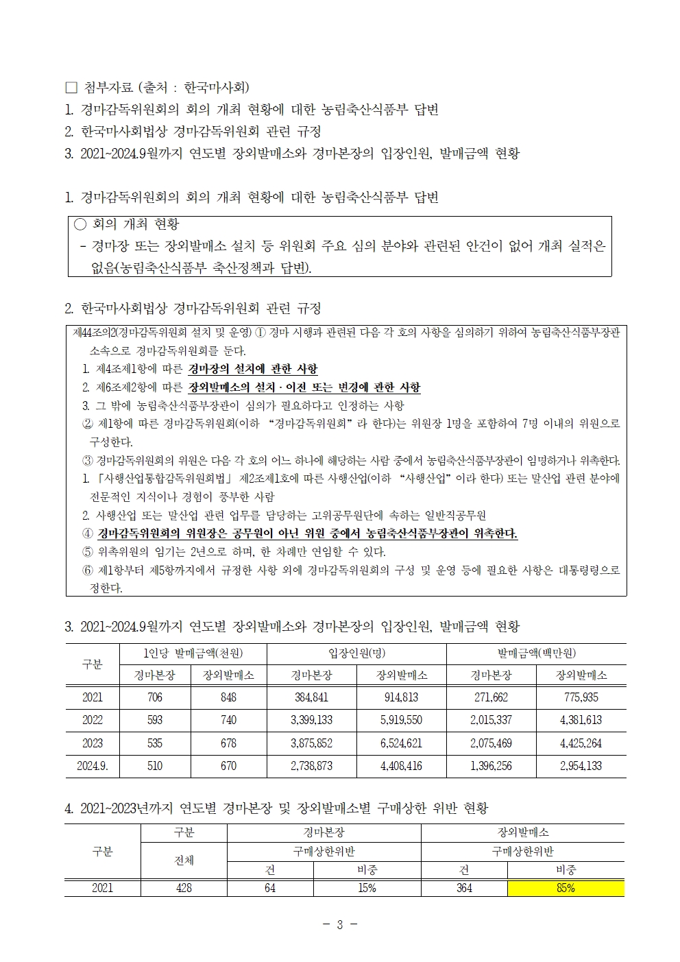 241022 [윤준병 의원 국정감사 보도자료] 윤준병 의원_ 경마감독위원회 설치 후 한 차례도 회의 개최 안해.hwp