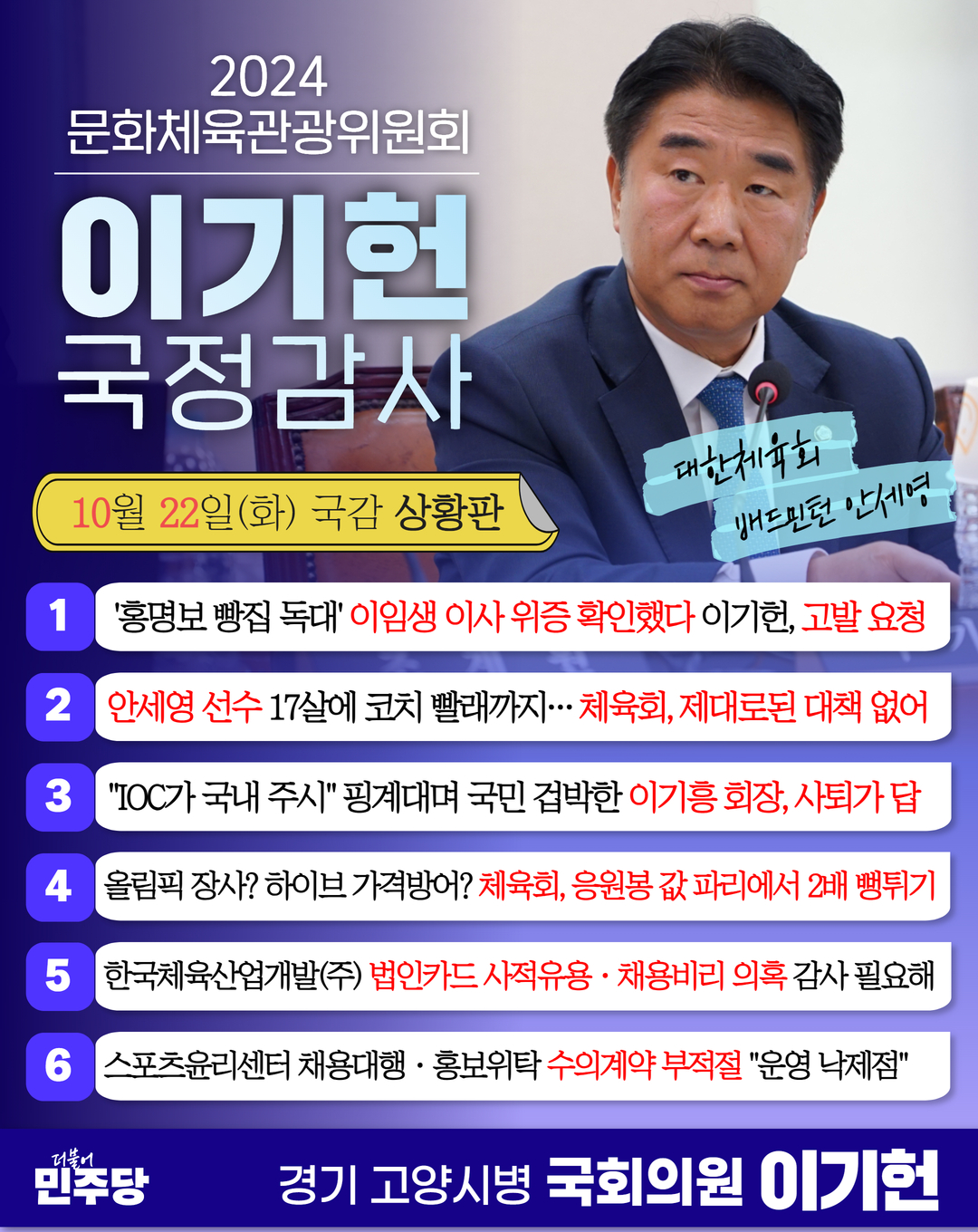 【이기헌 2024 문체위 국감】 6일차 상황판_체육