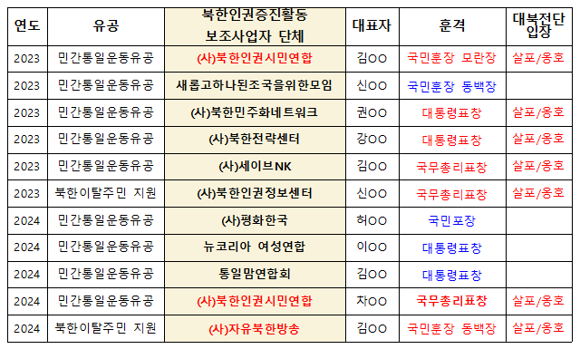 - 대북전단살포단체 관계자 다수, 정부 포상 등 혜택