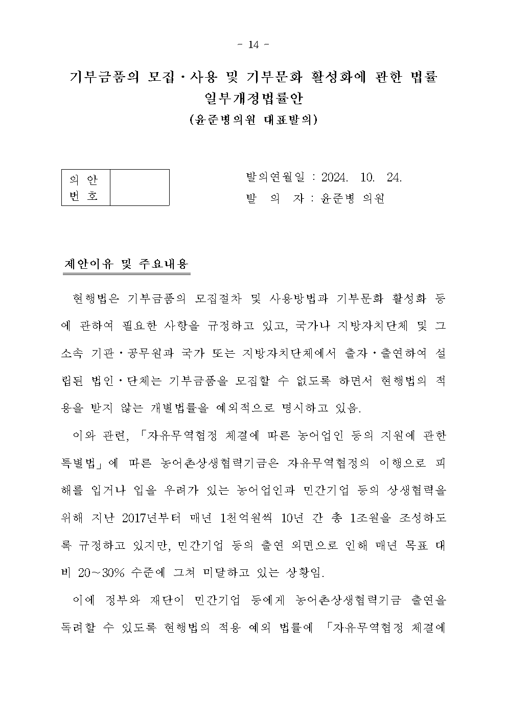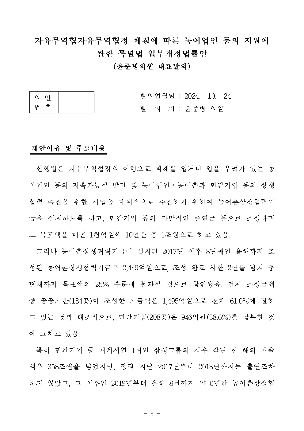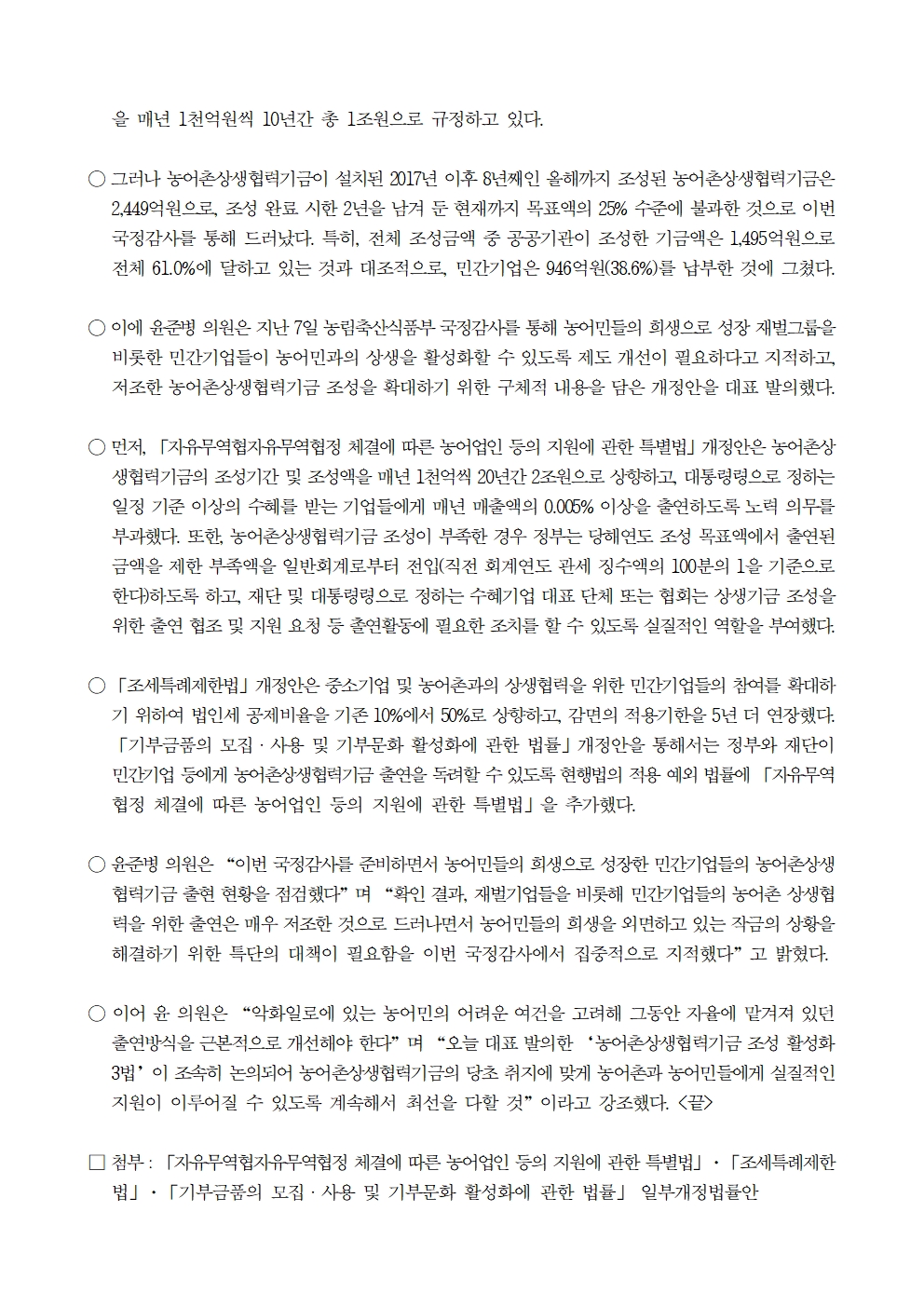 [윤준병 의원 국정감사 보도자료] 윤준병 의원_ 국정감사 후속입법 ‘농어촌상생협력기금 조성 활성화 3법’ 발의!