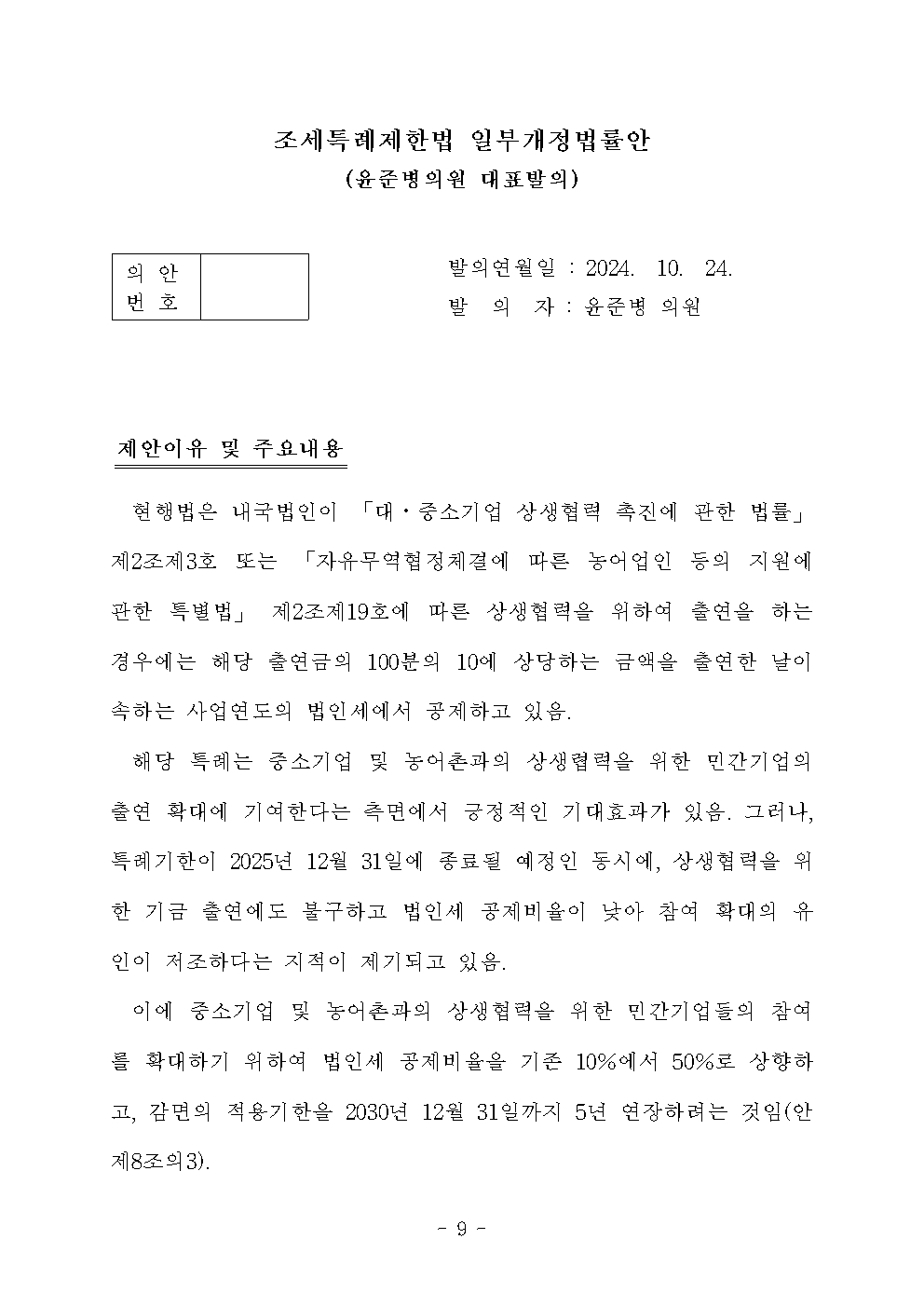 241025 [윤준병 의원 국정감사 보도자료] 윤준병 의원_ 국정감사 후속입법 ‘농어촌상생협력기금 조성 활성화 3법’ 발의!.hwp