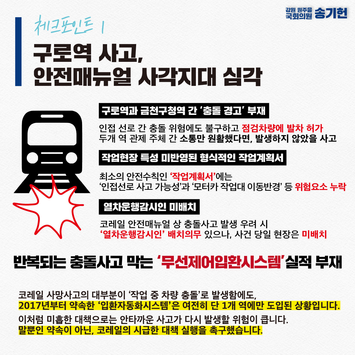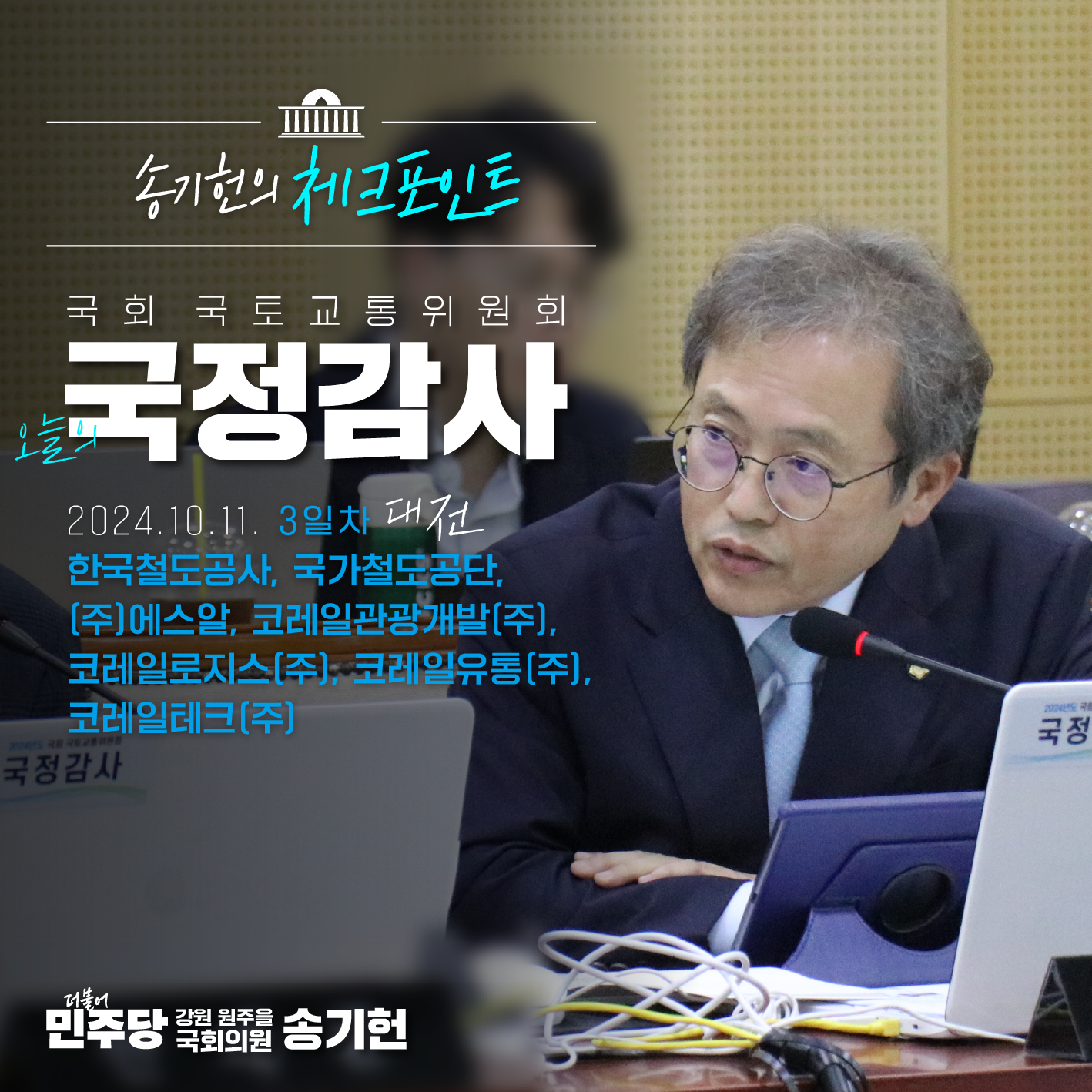 [국회의원 송기헌 카드뉴스] 국정감사 3일차, 송기헌의 체크포인트|한국철도공사 외 7개 기관