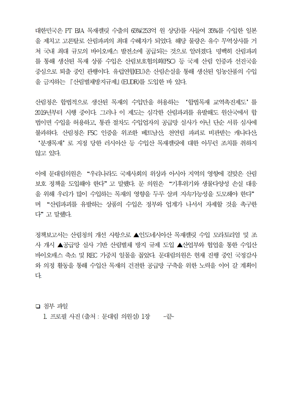 [문대림 의원 보도자료] 20241010 국내바이오매스발전 인도네시아열대우림파괴해만든목재태워.hwp