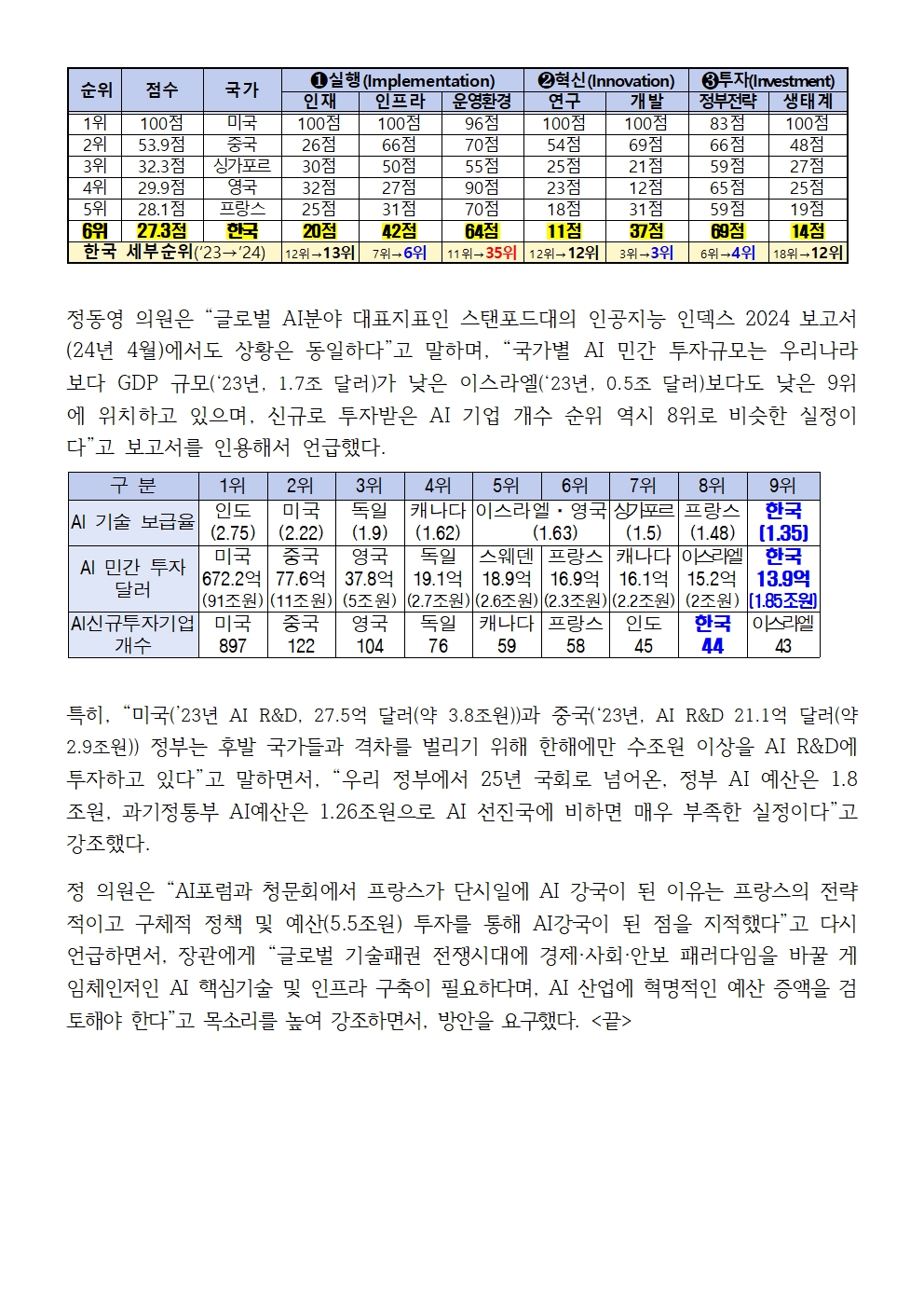 [국회의원 정동영 국감보도자료] 정동영 “국가 운명을 가를 AI전쟁에, 예산·인력 등 국가총동원령을....”