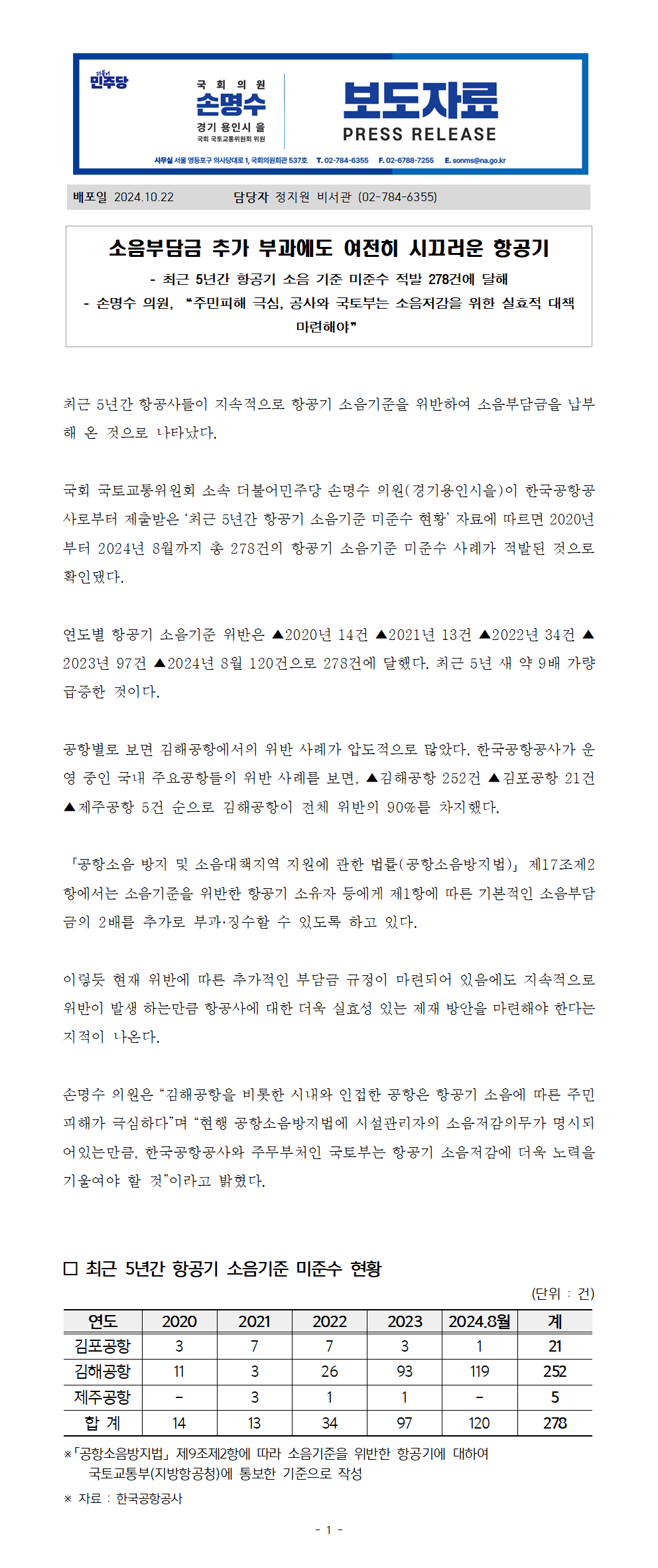241022_손명수의원실_보도자료_소음부담금_추가_부과에도_여전히_시끄러운_항공기.hwp