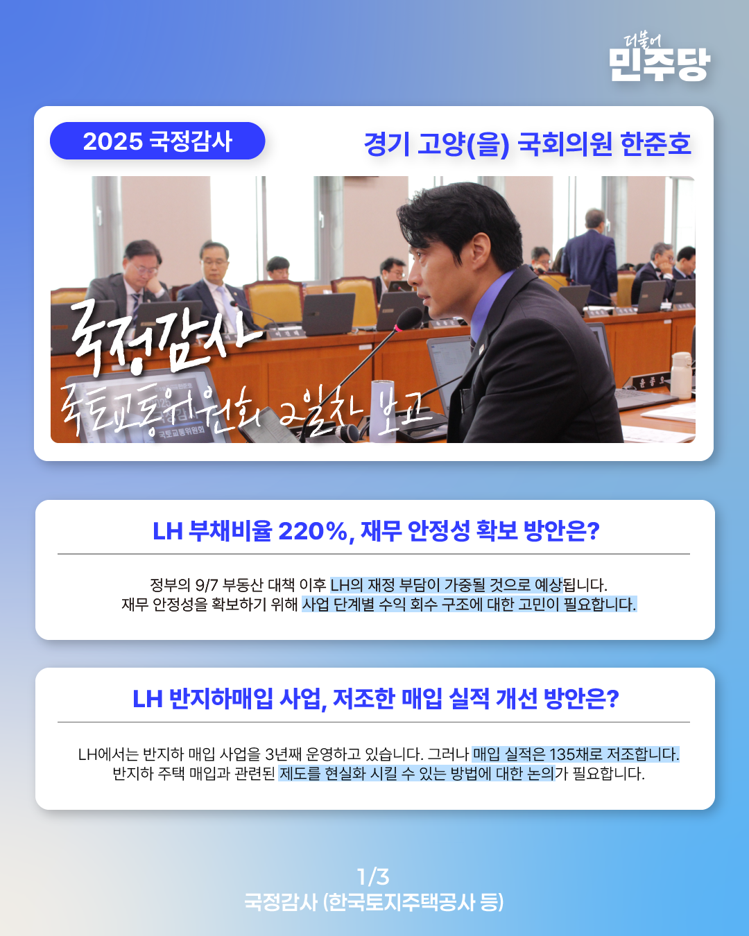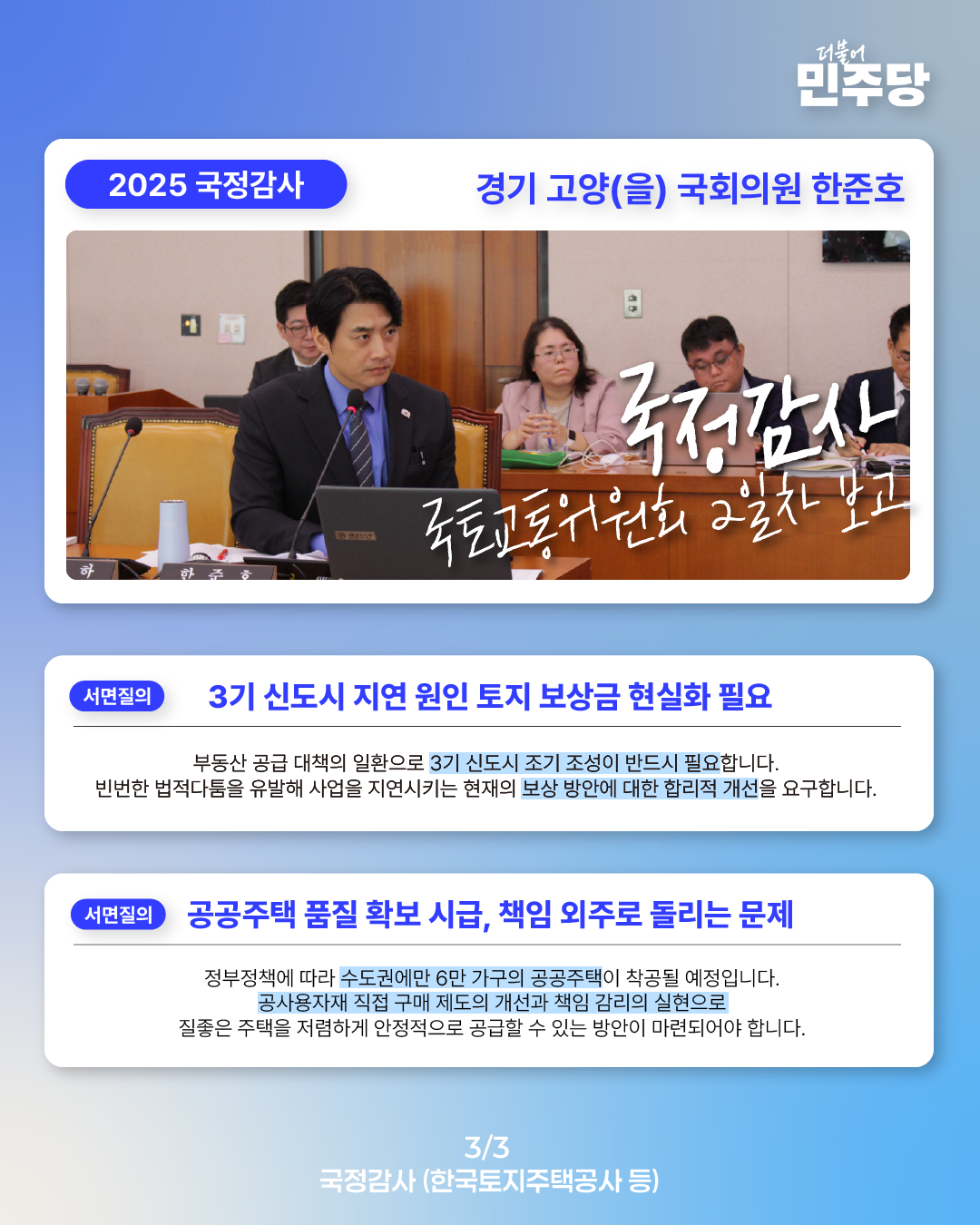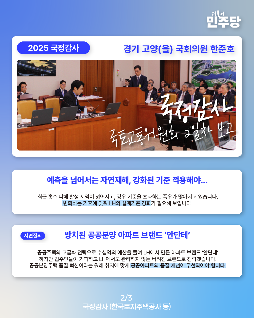 [국회의원 한준호 2025 국정감사 웹자보] 국정감사 2일차 보고