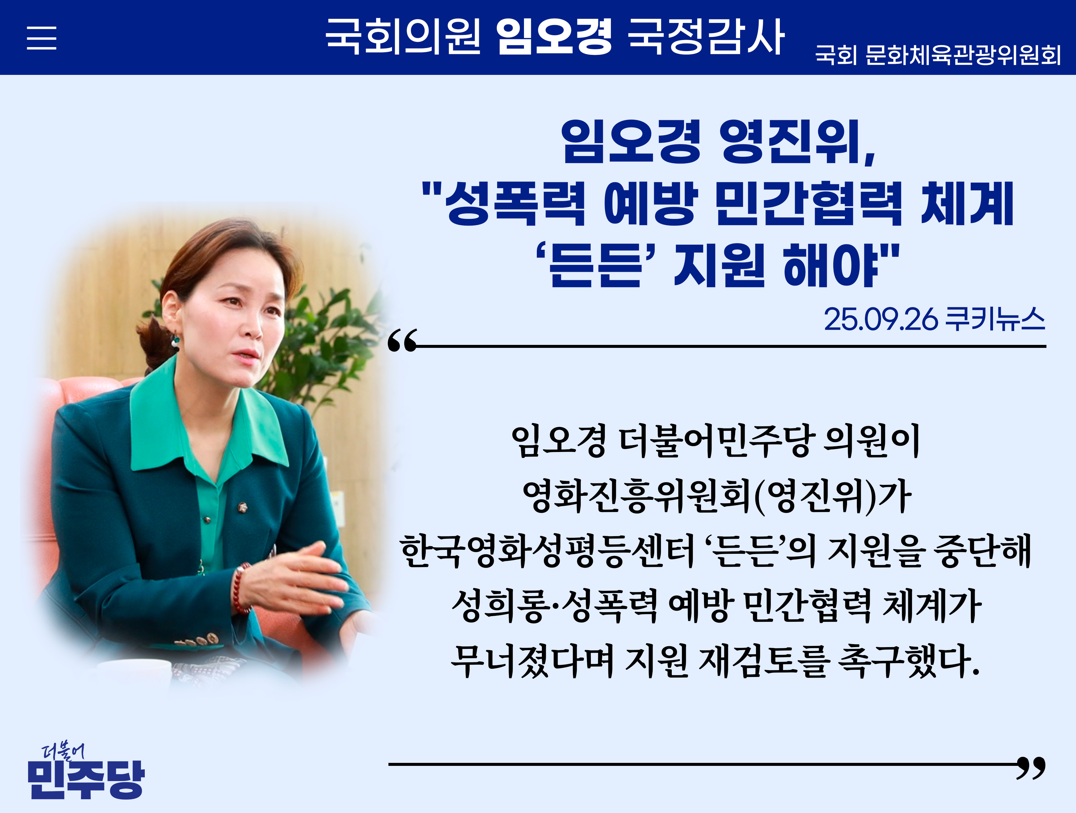 [임오경 카드뉴스]쿠키뉴스 / 임오경 “영진위, 성폭력 예방 민간협력 체계 ‘든든’ 지원 해야"