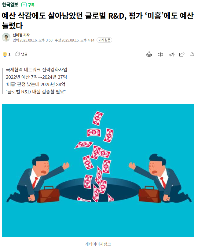 • 과기부 지침에 두 달 새 글로벌 R&D 예산 3.5배... "돈도 기술도 흘러 나갈라"