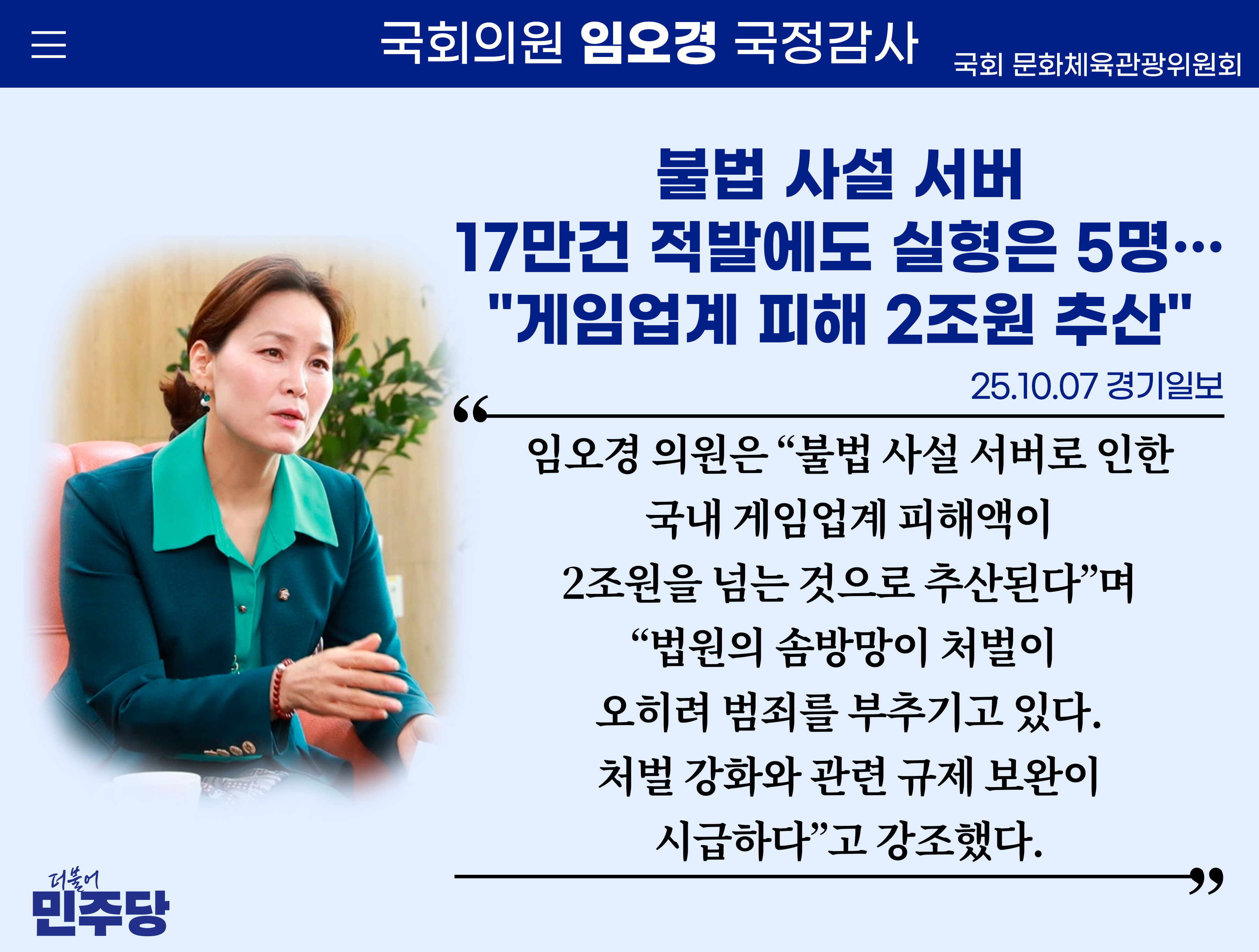 [임오경 카드뉴스]경기일보 / 불법 사설 서버 17만건 적발에도 실형은 5명..."게임업계 피해 2조원 추산"
