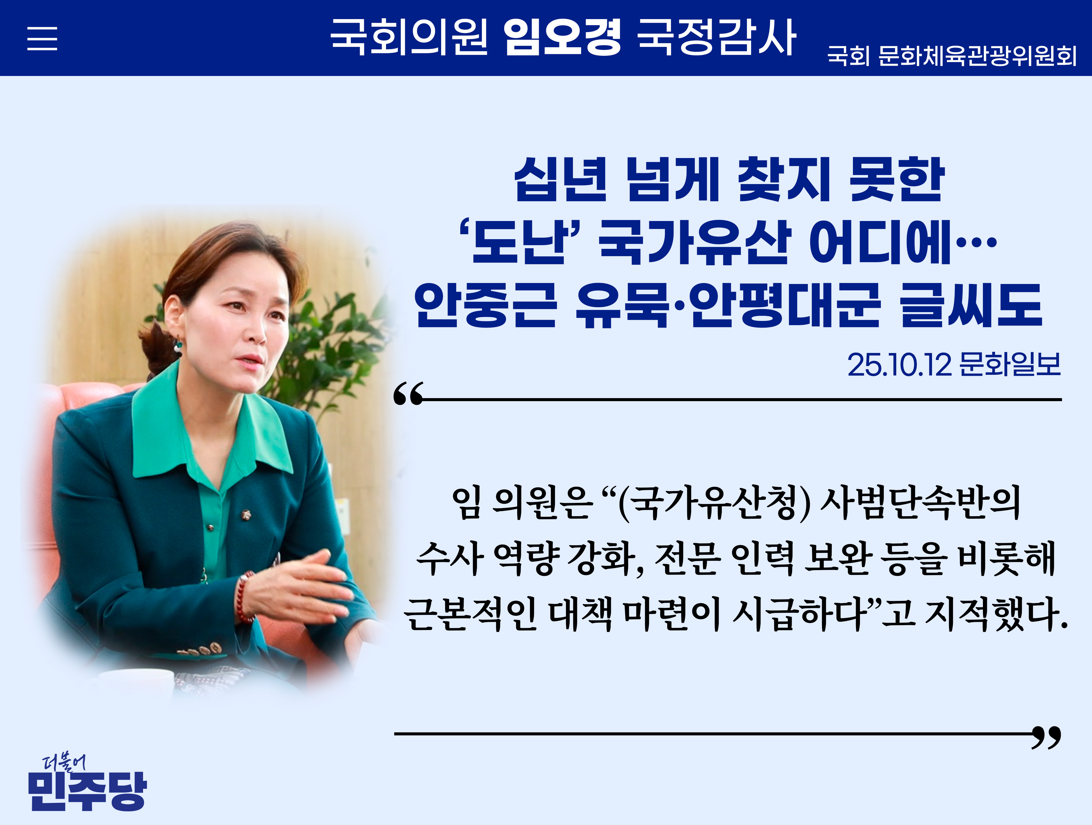 [임오경 카드뉴스]문화일보 / 십년 넘게 찾지 못한 ‘도난’ 국가유산 어디에…안중근 유묵·안평대군 글씨도