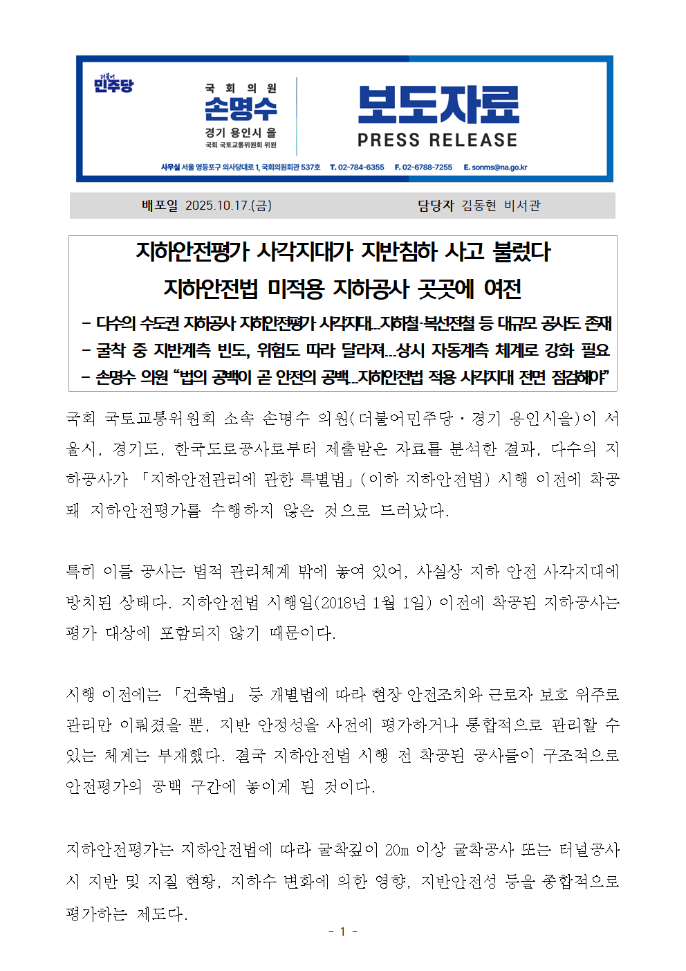 251017_지하안전법_미적용_지하공사_곳곳에_여전_손명수의원.hwp