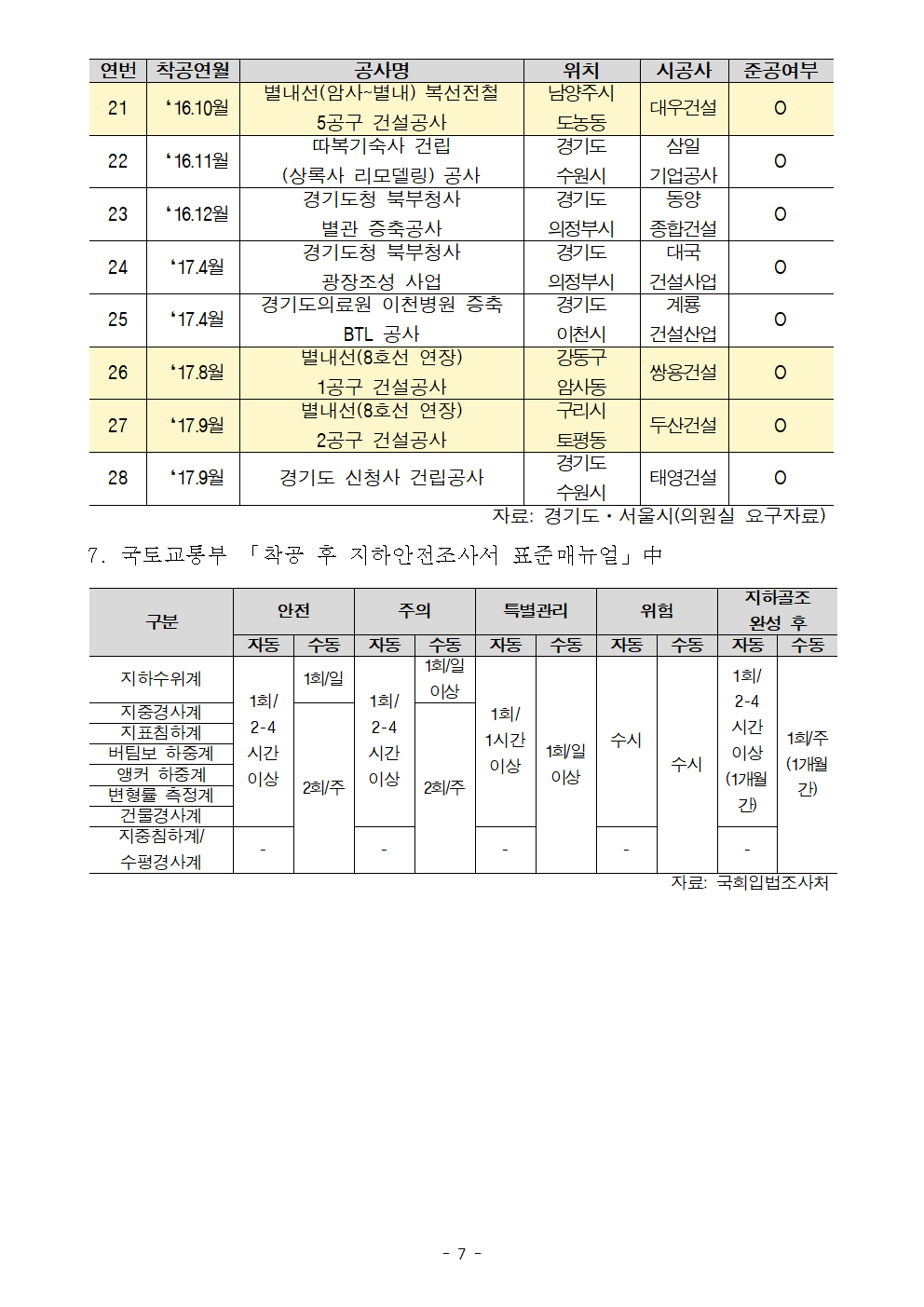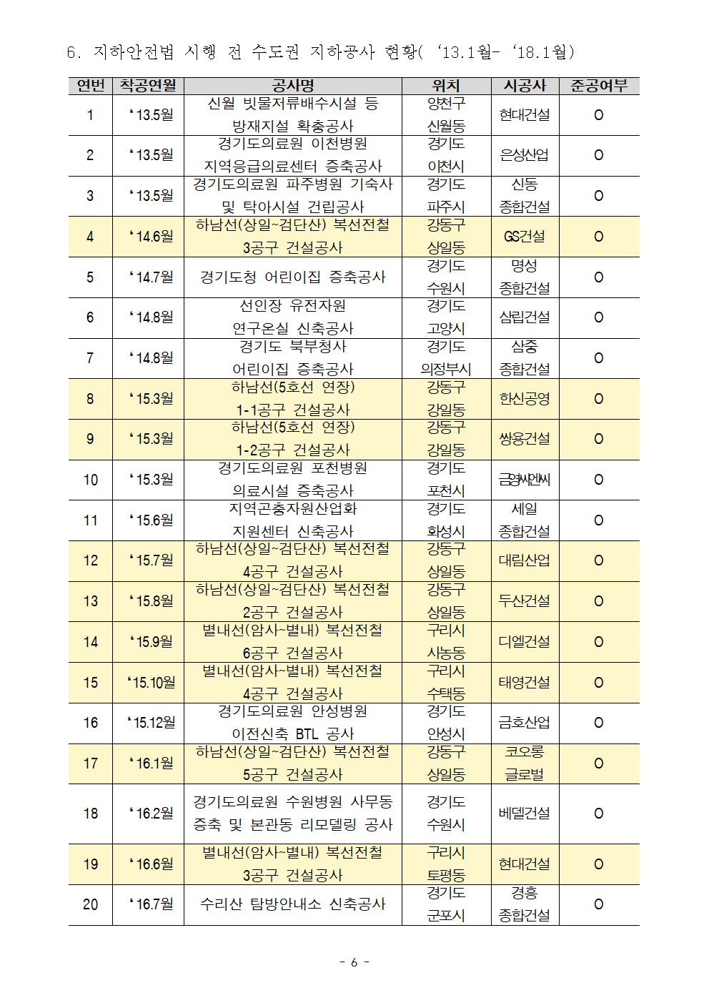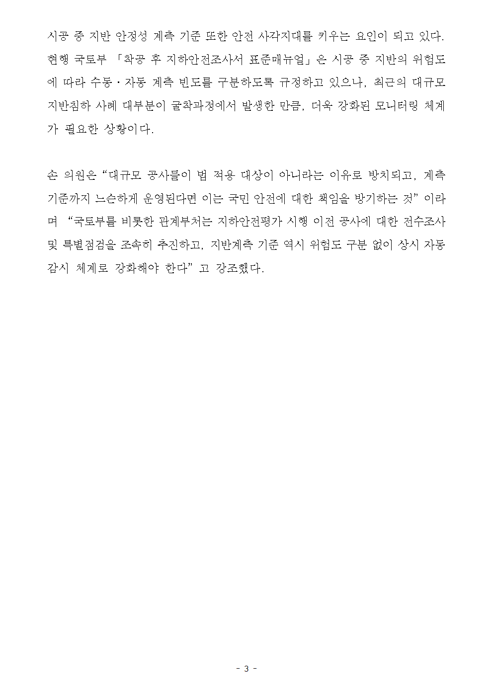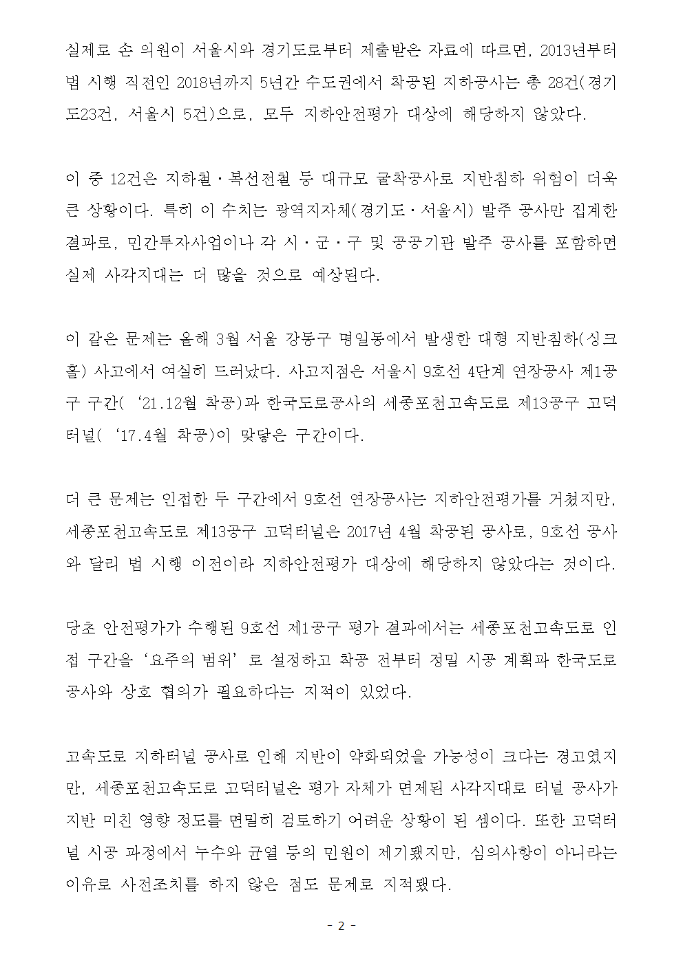 [국회의원 손명수 보도자료] 지하안전평가 사각지대가 지반침하 사고 불렀다 지하안전법 미적용 지하공사 곳곳에 여전