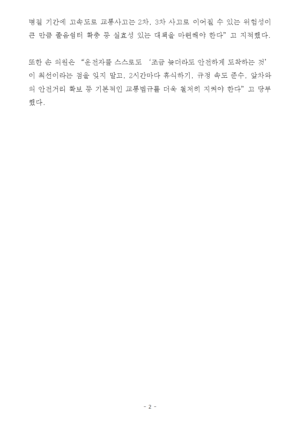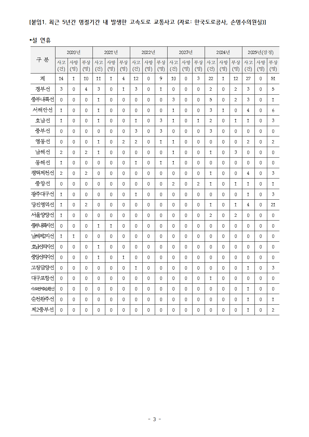 [국회의원 손명수 보도자료] 추석 ‧ 설 명절기간 고속도로 사고 발생건수 최근 5년간 194건