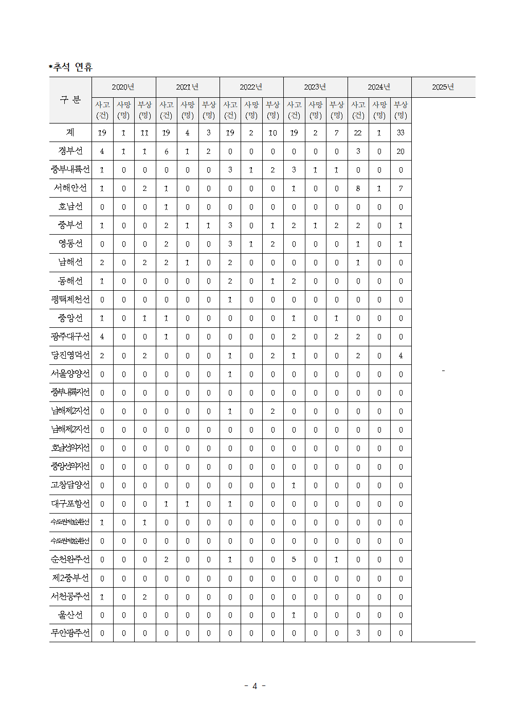 [국회의원 손명수 보도자료] 철도 무단횡단 사고 최근 5년간 104건... 경기가 23건으로 최대