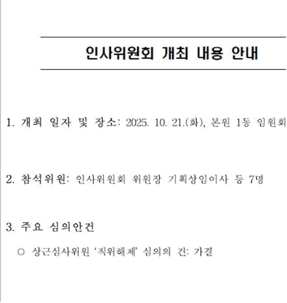 첨부> 심사평가원 인사위원회 개최 내용 알림 자료