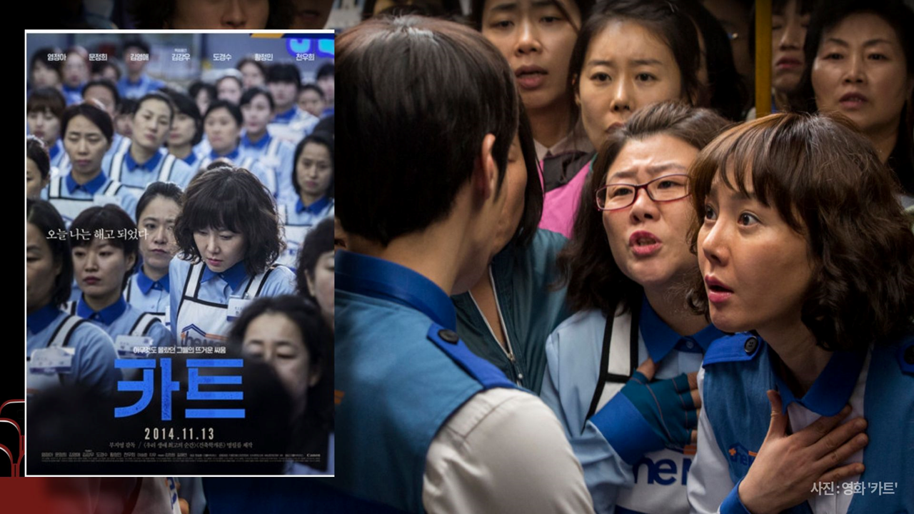 〇 2014년 영화 ‘카트’. 마트 노동자들에 대한 해고, 인권침해, 노조 탄압 실태를 그대로 보여줌.