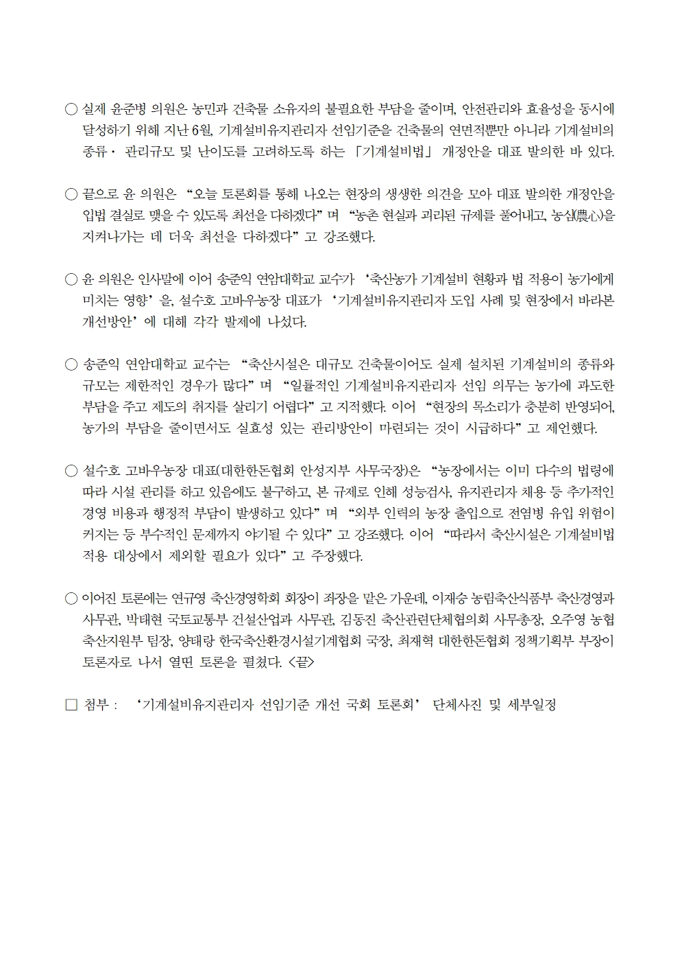 250922 [윤준병 의원 국정감사 보도자료] 윤준병 의원 단순 기계설비 대형축사·농업용 건축물에도 일률적 법 적용 안돼.hwp