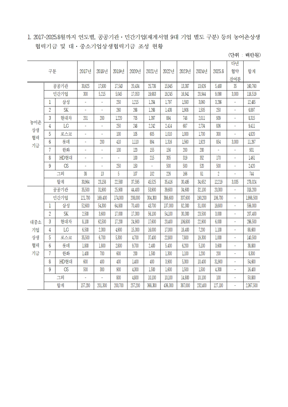 [윤준병 의원 국정감사 보도자료] 민간기업의 농어촌 상생 위한 기금 출연비중 41% 반해, 중소기업엔 84%