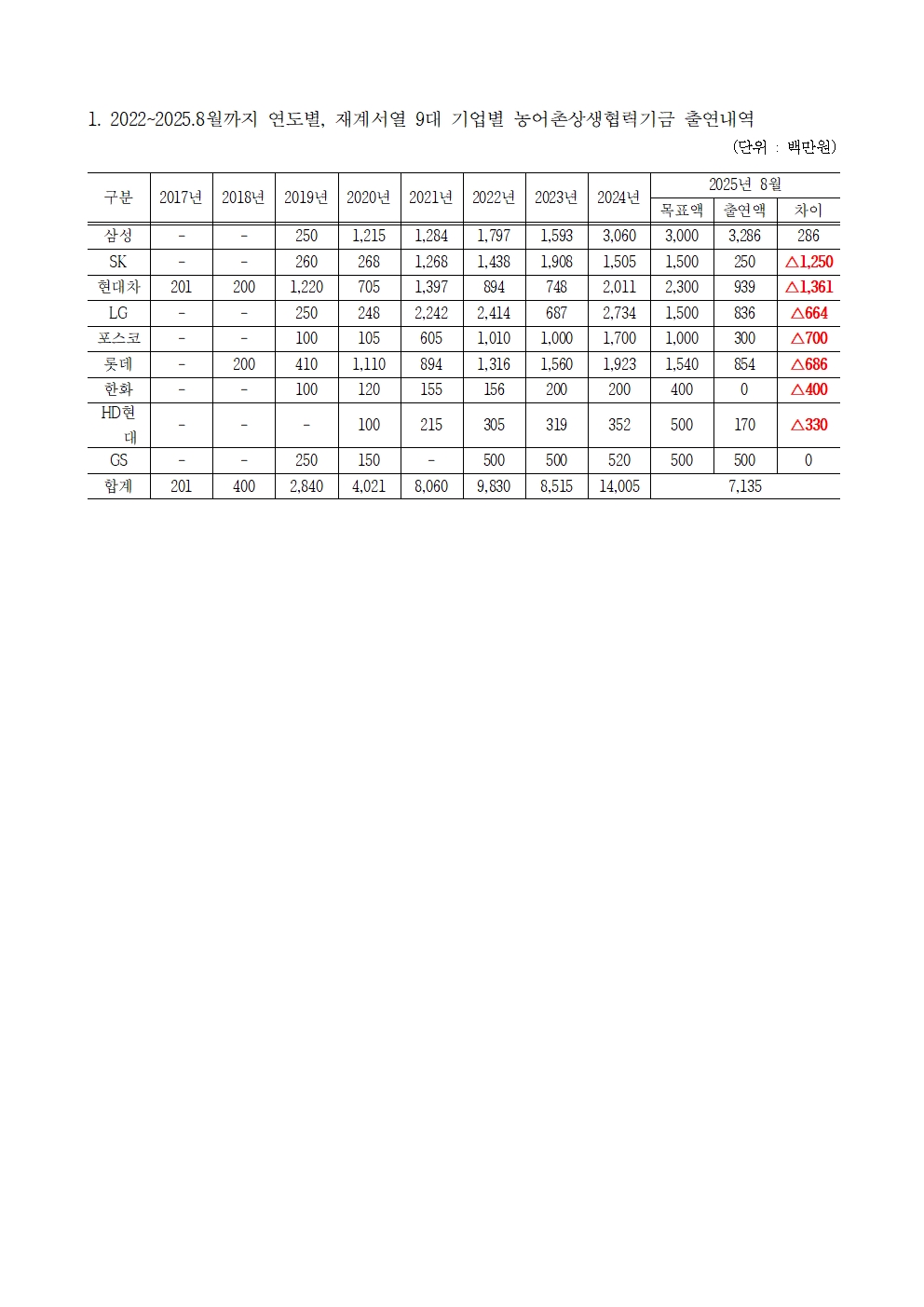 [윤준병 의원 국정감사 보도자료] 9대 재벌기업 중 농어촌상생기금 약속 삼성·GS 단 두 곳만 이행!
